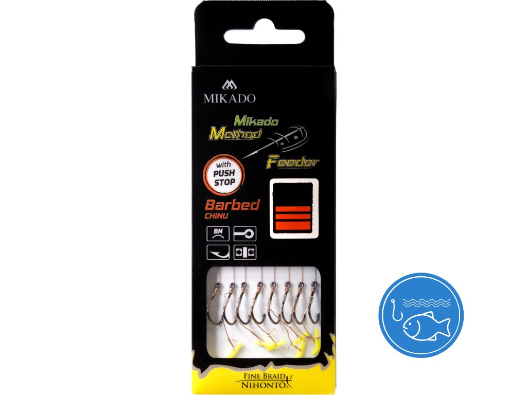 Kompletní návazce pro Method feeder. Verze - s pleteno šňůrou ve hnědé barvě, s háčky s protihrotem v různých verzích uchycení pelet. Kompletované na vysoce jakostní pletené šňůře Fine Braid, se super ostrými háčky.Doplňkové parametry