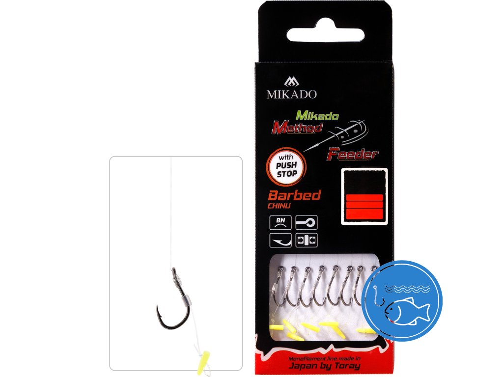 Mikado NÁVAZEC - MF - S PUSH STOP - HÁČEK S PROTIHROTEM ČÍSLO 8 / VLASEC 0.25mm/10cm - 8 ks