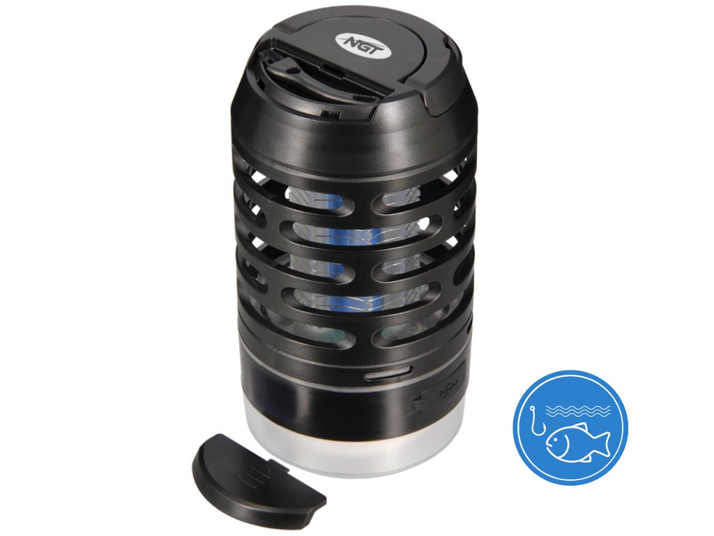 Multifunkční, kompaktní, dobíjecí lapač hmyzu a svítidlo od britské značky NGT je perfektním doplňkem pro rybaření, kempování nebo táboření. Bug Zapper & Light System je účinný lapač hmyzu a zároveň praktické LED svítidlo do bivaku, stanu nebo rovnou na lovné místo, kde by měl také značně eliminovat dotěrný hmyz. Lapač funguje na principu ultrafialových paprsků, které přilákají obtížný hmyz do bezprostřední blízkosti lapače, kde následně dojde k usmrcení hmyzu neškodným elektrickým výbojem.