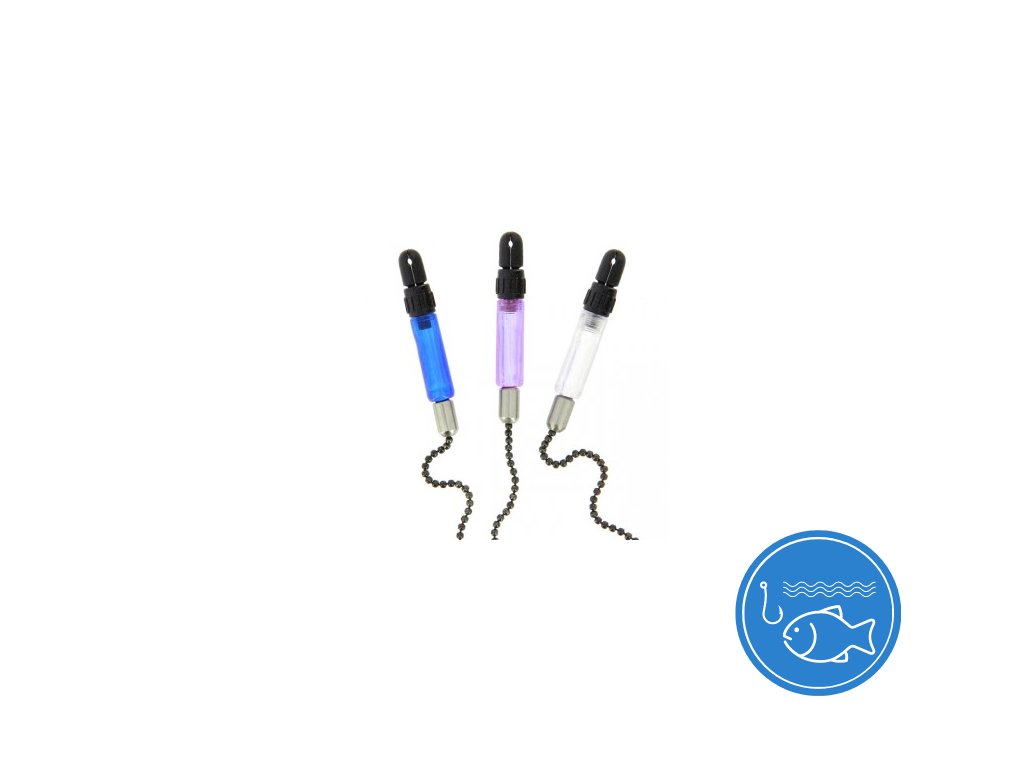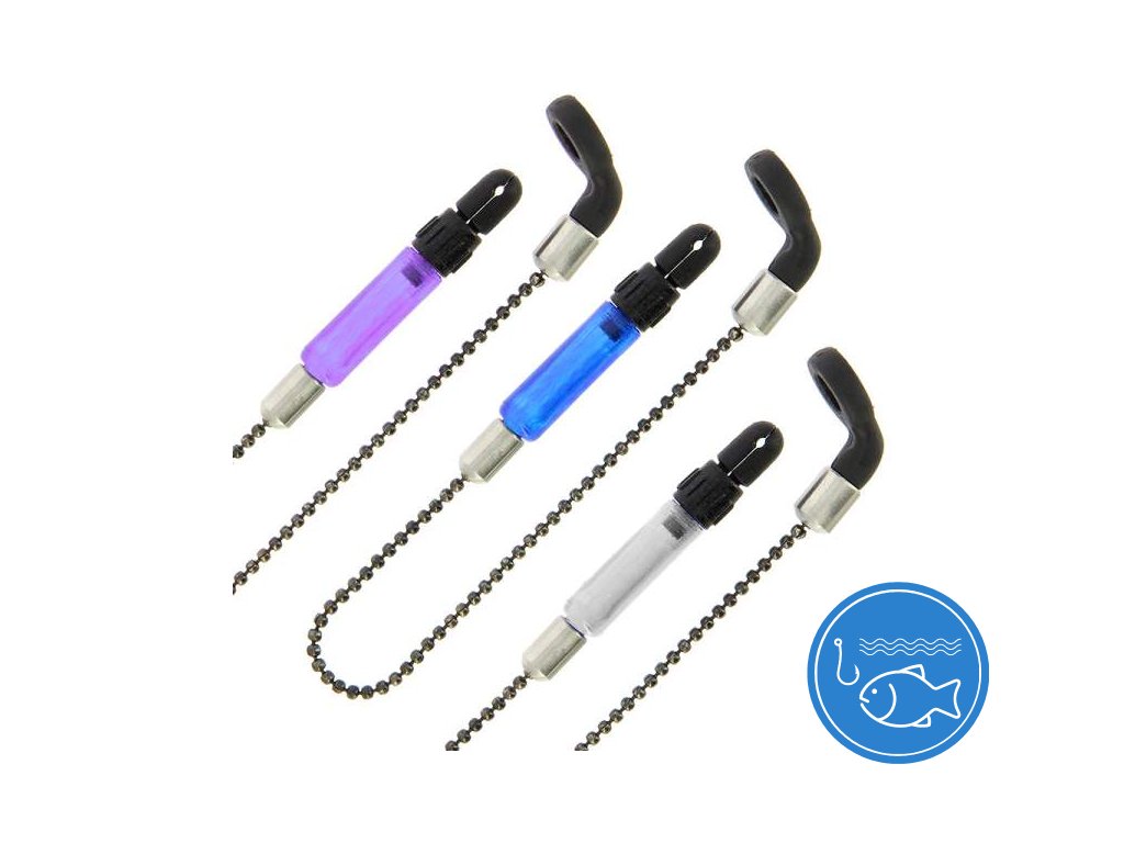 Sada tří jednoduchých řetízkových swingerů NGT se spolehlivým uchycením vlasce pomocí plastové svorky, u které lze snadno pootočením nastavit odpor upnutí. V sadě je modrý, bílý a fialový swinger.