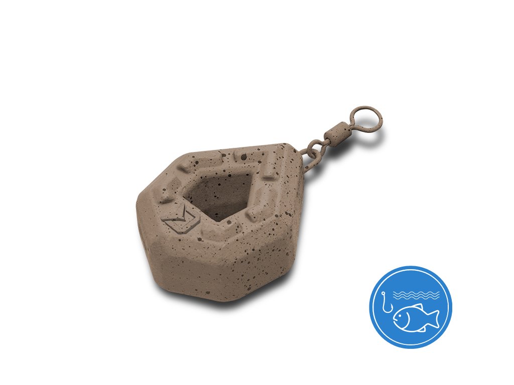 Je inovativní zátěž designovaná týmem značky Delphin, vhodná při lovu k odhozu na členitém dně, nebo při lovu na tekoucích vodách. Díky jedinečnému hranatému tvaru bylo možné vytvořit kompaktnější zátěž, která má při menších vnějších rozměrech stejnou hmotnost jako běžně prodávaná olova podobného typu. To zaručí výborné nahazovací vlastnosti a rychlé klesání ke dnu. Pro docílení co nejdelších a nejpřesnějších hodů je navíc spodní část zátěže rozšířena, aby se zde koncentrovalo více hmoty, a tak prodlužuje vaše hody o další důležité metry! Výstupky na hlavních plochách zátěže eliminují klouzání po dně. Otvor ve středu zátěže umožňuje rychlejší klesání montáže vodním sloupcem. Povrch zátěže je chráněn barvou v přírodních odstínech hnědé s černými frkanci, což dokonale kamufluje její přítomnost na dně. Zvětšené očko na obratlíku umožňuje snazší a rychlejší upevnění zátěže na montáž.Doplňkové parametry