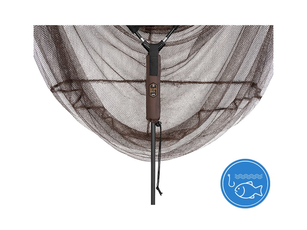 Kaprařský podběrák za příznivou obstarávací cenu, který poskytne možnost komfortního podebírání těch největších úlovků. U tohoto produktu se skloubil výborný poměr ceny a kvality, tak jak je tomu u produktů ze série SYMBOL již standardem. Síťka podběráku na první pohled zaujme nekonvenční hnědou barvou a díky použití struktury s malými oky je maximálně šetrná k rybám během podebírání či přenášení ryby na podložku. Každý úlovek tak bude po podebrání v bezpečí a nehrozí jeho nechtěné poranění. Velkou výhodou tohoto podběráku je decentní plovák na spoji rukojeti a hlavy. Díky tomu není potřeba dokupovat žádný plovák navíc a podebírání ryb bude pohodlné i v případě, že jste na rybách sami. Podběrák se navíc vyznačuje svojí nízkou hmotností, což jen usnadňuje manipulaci s ním. Dvoudílná rukojeť o celkové délce 1,8m je vyrobena ze štíhlého strukturovaného uhlíku s dostatečnou pevností na podebrání těch největších kaprů. Rukojeť je v místech uchopení potažena gumovou, protiskluzovou vrstvou, čímž je manipulace s ní komfortní za každých okolností. Hlavu lze k rukojeti snadno upevnit pomocí kovového konektoru ve tvaru Y. Díky použitému materiálu se konektor vyznačuje vysokou odolností vůči mechanickému poškození. Kromě toho se na něm nachází efektní prvek s logem značky Delphin. Technické parametry: Materiál rukojeti: uhlíková vlákna Celková délka rukojeti: 183cm Transportní délka: 117 cm Hmotnost rukojeti: 280g Hmotnost hlavy: 476gDoplňkové parametry