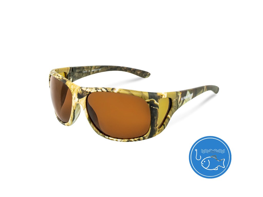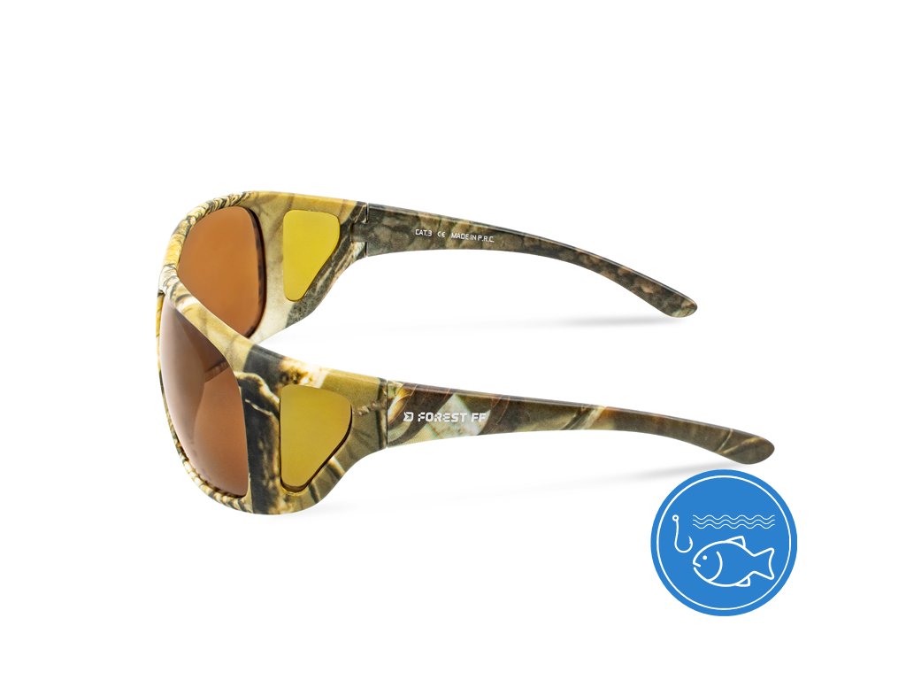 Polarizační brýle z řady SG FOREST v kamuflážovém provedení, které jsou přímo stvořené pro rybáře, či myslivce. Hnědé polarizační skla zaručují ochranu před slunečním zářením, ať už jste na lovu či procházce v přírodě. Označení FF (Full Frame) znamená, že rám brýlí je kolem celých skel. Po bocích brýlí se navíc nacházejí dvě malé polarizační skla, které pohlcují sluneční záření z boku a také zlepšují vaše periferní vidění. Lehký materiál, ze kterého jsou vyrobeny zaručuje nejen pohodlné nošení, ale i odolnost vůči poškození. Brýle SG FOREST jsou zabaleny a dodávány v pevném pouzdře se stylovou kamufláží. Polarizační brýle Delphin jsou vysoce kvalitním produktem se všemi potřebnými certifikáty a zkouškami vyžadovanými Evropskou unií. To garantuje jejich zdravotní způsobilost a špičkové vlastnosti potvrzeny mnoha testy. Technické parametry: Šířka nos: 2,2cm Rozměr skla: 63cm x 47cm Délka ramínka: 10,4cm Hmotnost: 28gDoplňkové parametry
