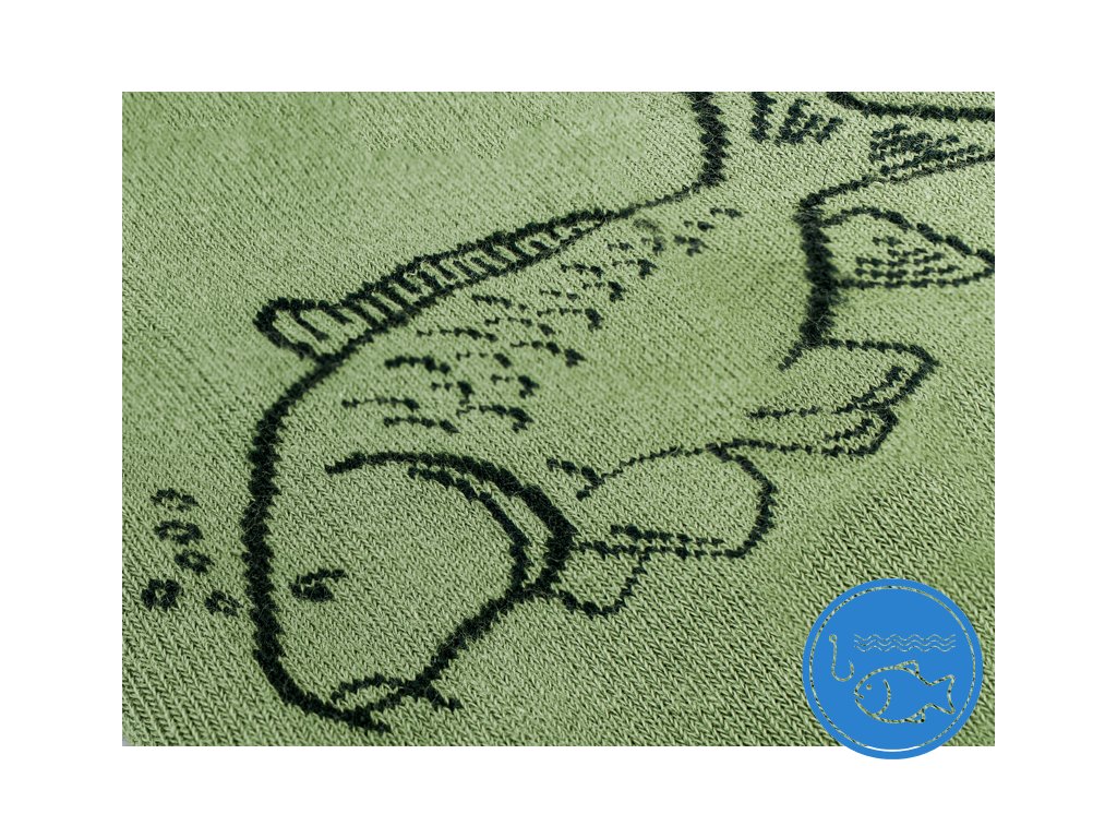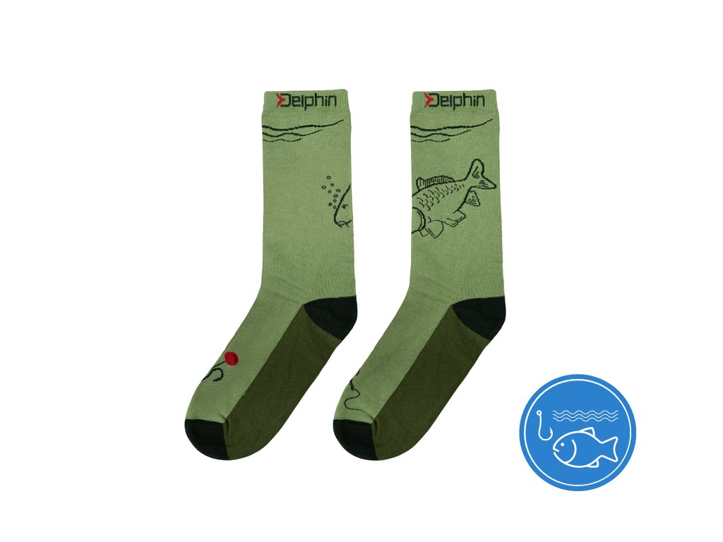 V šatníku správného rybáře nesmí chybět dobré ponožky a to hlavně ty, které na sobě nesou design s kaprem. Kombinace zelené a červené barvy s rybářským motivem si nepochybně najde své příznivce mezi mladší, ale i starší generací rybářů. Univerzální velikost 41-46 poskytne dokonalý komfort pro každou nohu. Pohodlný materiál s hřejivými vlastnostmi oceníte hlavně při jarních a podzimních rybaření, rozhodně je však můžete používat během celého roku. Výška a střih ponožky je vhodná pro různou rybářskou či vycházkovou obuv, díky čemuž jsou vhodné nejen na ryby, ale i běžné nošení. Technické parametry Materiálové složení: 80% bavlna, 15% polyester, 5% elastan Velikost: 41-46Doplňkové parametry