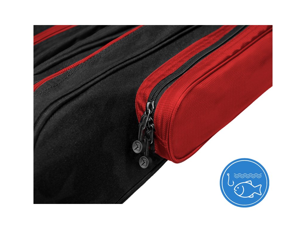 Do detailů propracované tříkomorové pouzdro z dílny firmy Delphin, které splní požadavky i náročných příznivců lovu feederovou technikou. Je designované v typické bordovo-černé kombinaci charakteristické pro feederové produkty ze série ATOMA. Boční a spodní stěny pouzdra jsou důkladně polstrované, což zaručuje transport bez obavy o vaše pruty. Každá komora má zvláštní zipovatelný vstup, díky čemuž jsou pruty od sebe odděleny a excelentně chráněny před poškozením. V každé jedné komoře se nacházejí také polstrované kapsy pro uložení prutů, které je navíc možné dokonale zafixovat páskami se suchým zipem. Takto uložené a fixované pruty najdete po transportu vždy na svém místě. Výhoda pouzdra ATOMA spočívá také v tom, že se do něj vkládají pruty s navijáky orientovanými směrem nahoru. Hlavní deviza takového systému spočívá v tom, že nedochází při položení pouzdra na zem k přímému kontaktu navijáků se zemí. Tím pádem jsou lépe chráněny a je minimalizována šance jejich poškození. Po bocích se nacházejí dvě kapsy se zipem. Jedna z nich je extra dlouhá a je možné do ní uložit například podběrákovou tyč, vidličky, či různé feederové držáky prutů a ramena. Z vnější strany je navíc na ní našitá kapsa a stahovací popruh, díky kterému můžete přenášet například další prut, případně vidličky a jiné příslušenství. Na druhé straně pouzdra se nachází menší zipovatelná kapsa, která je ideální na tubus s feederovými špičkami. Pouzdro je šité z velmi odolné a pevné textilie, která zamezuje předčasnému opotřebení a znehodnocení. Vínové části jsou zase z nepromokavé, kvalitní látky, díky které se nemusíte obávat ani menšího deště. Delphin ATOMA disponuje délkově nastavitelným ramenním popruhem s vyztuženou částí, ale také rukojeťmi, usnadňujícími transport. Spolu s kvalitními zipy s běžcem, zajímavým designem a detailním zpracováním je toto pouzdro nejen velmi efektní, ale i vysoce praktické. Technické parametry: Model: Puzdro Delphin ATOMA Triple 360-3 Vnější délka pouzdra: 132 cm Délka boční kapsy: 110 cm Délka kapsy na špičky: 66cm Pro pruty: 360cm / 3 díly Model: Puzdro Delphin ATOMA Triple 390-3 Vnější délka pouzdra: 147 cm Délka boční kapsy: 110 cm Délka kapsy na špičky: 66cm Pro pruty: 390cm / 3 díly, 400cm / 3 dílyDoplňkové parametry