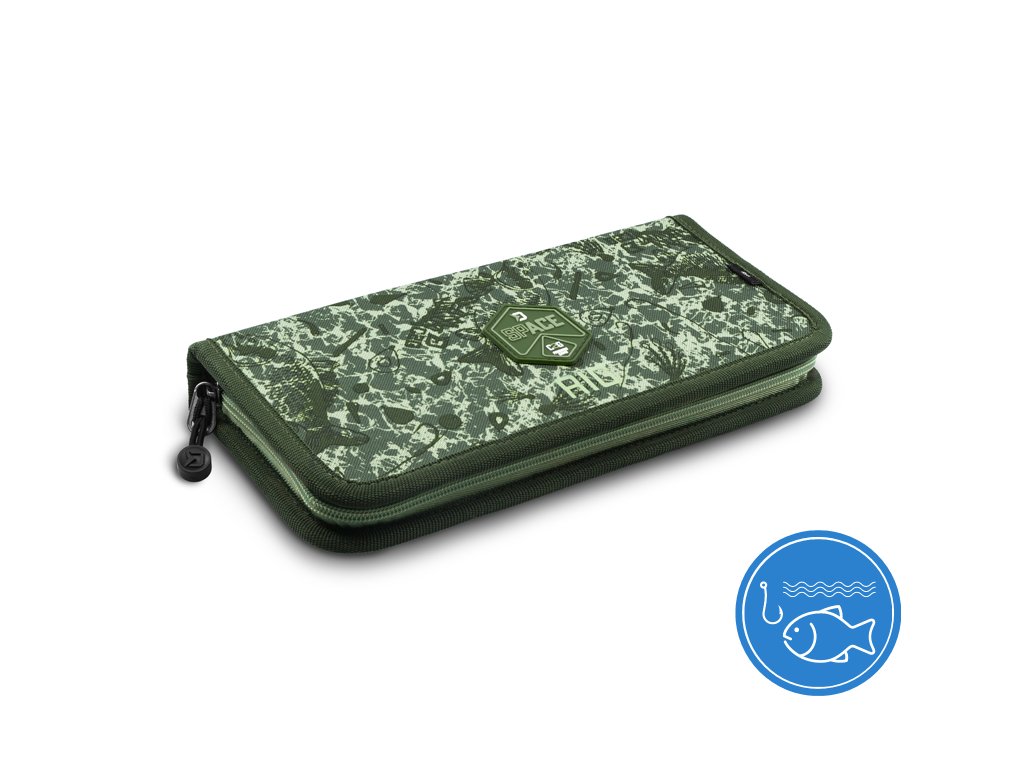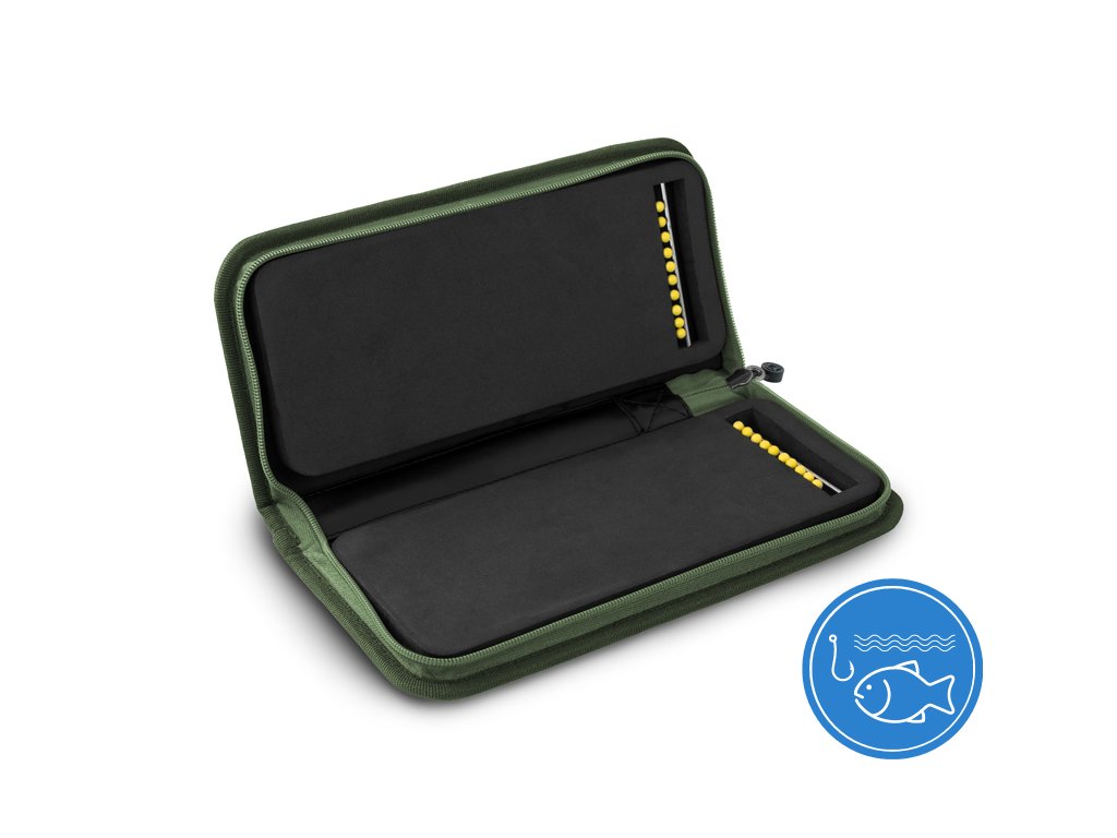 Delphin SPACE je označení pro exkluzivní sérii tašek z dílny značky Delphin. Vyznačuje se špičkovým zpracováním, kvalitními zipy, ale zejména výjimečným designem s použitím C2G kamufláže. Delphin Rig SPACE slouží k uložení kaprařských i jiných návazců. Pouzdro je jednoduché konstrukce, avšak již dílenské vypracování svědčí o jeho kvalitě a životnosti. Z vnější strany je pouzdro zcela vyztuženo a potaženo odolným materiálem. Uvnitř se nachází vrstva PVC, na které je upevněn tvrzený molitan. Také se zde nachází 20 kusů špendlíků s kulatými hlavičkami, díky čemuž je jejich zatlačování velmi pohodlné. Kombinace vnějšího materiálu s vnitřní vrstvou PVC zajistí, že vaše návazce budou vždy dokonale chráněny a připraveny k okamžitému použití. Pouzdro je osazeno zipem s kovovým běžcem, na kterém je stylový držák s logem Delphin. Technické parametry: Rozměry: 30x14x4cm Kapacita pouzdra: 20 ks návazců o max. délce cca 24,5cm Stylová patentovaná kamufláž z dílny značky Delphin pod označením C2G má mnoho podob a úhlů pohledu. Přesně tak i její název, který můžeme volně přeložit jako Carpath 2. generace, což přímo odkazuje na jejího předchůdce, ale můžeme ho číst i jako Carpath to Green, tedy přechod myšlenky Carpathu do zelené barvy. Její jedinečnost a nezaměnitelnost spočívá v prvcích, ze kterých je vytvořena. Na první dojem jde o kamufláž tvořenou třemi různými odstíny zelené. Všechno se však změní při detailnějším pohledu, kdy si všimnete siluety kaprů, komponent kaprařské montáže a log značky Delphin spolu s označením C2G. Díky tomuto neopakovatelnému provedení se vaše rybářská výbava okamžitě stane jedinečnou a maximálně originální.Doplňkové parametry