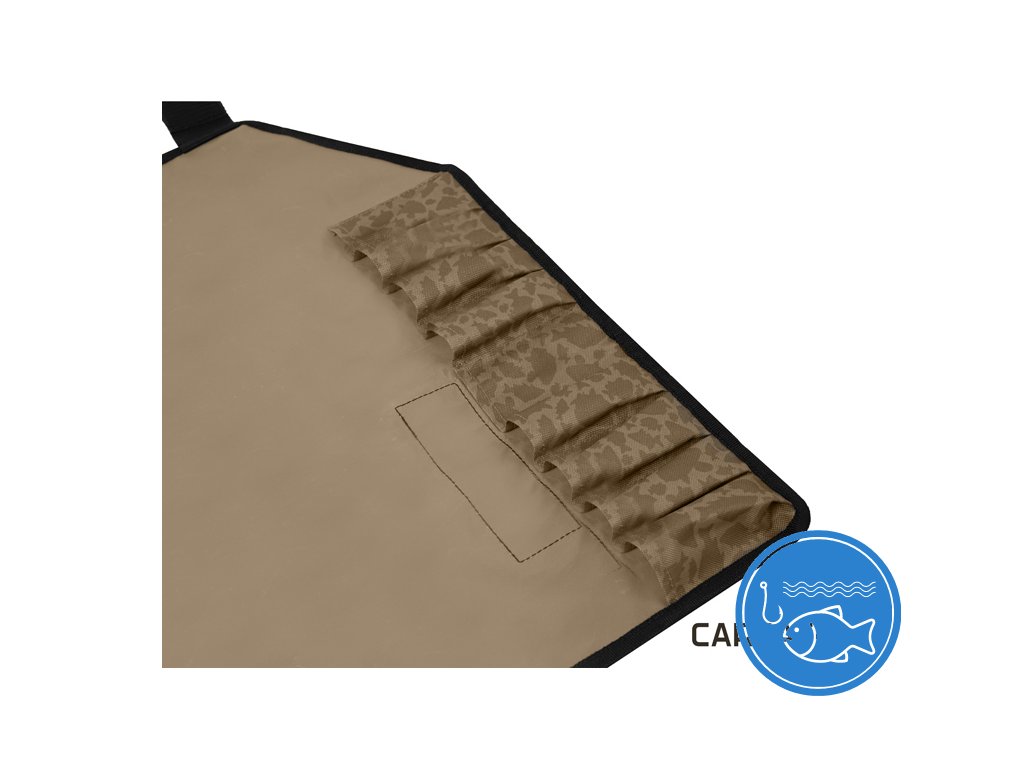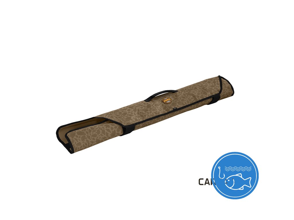 Delphin Area STICK je praktický obal na vidličky vyrobený z poměrně hrubé textilie, která je pouze z vnitřní strany pogumovaná, a proto je možné vnitřní stranu i lehce očistit od případných nečistot. Je navržen tak, abychom do něj uložili až 8 ks vidliček i hrubšího průměru, které mají ostrý hrot jako například naše C-STICK nebo D-STICK. Proto jsme spodní část, která je určena pro zasouvání hrotů, vybavili hrubým a zesíleným materiálem. Nyní se vám už nestane to, že by vám ostrý konec propíchl tašku nebo jinak poškodil věci uložené v ní. Obal s vidličkami jednoduše srolujete a zafixujete suchým zipem, který slouží i jako ochrana proti poškrábání. Pouzdro má na vrchní straně našitý popruh, který slouží jako madlo pro přenos pouzdra. Dodávaný je v naší jedinečné hnědé Carpath kamufláži se siluetami kaprů. Technické parametry: Rozměr obalu - rozložený: 95x55cm Rozměr obalu - složený: 80x20cm Max. rozměr složené vidličky: 80cm Kamufláž CARPATH je unikátním a patentovaným designovým vzorem, který v sobě skloubil maskovací vizuál kamufláže a siluety kaprů, které tuto kamufláž tvoří. Tento jedinečný a neopakovatelný návrh pochází kompletně z dílny značky Delphin a posouvá hranice vašeho rybářského vybavení do zcela nové dimenze.Doplňkové parametry