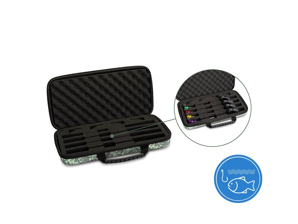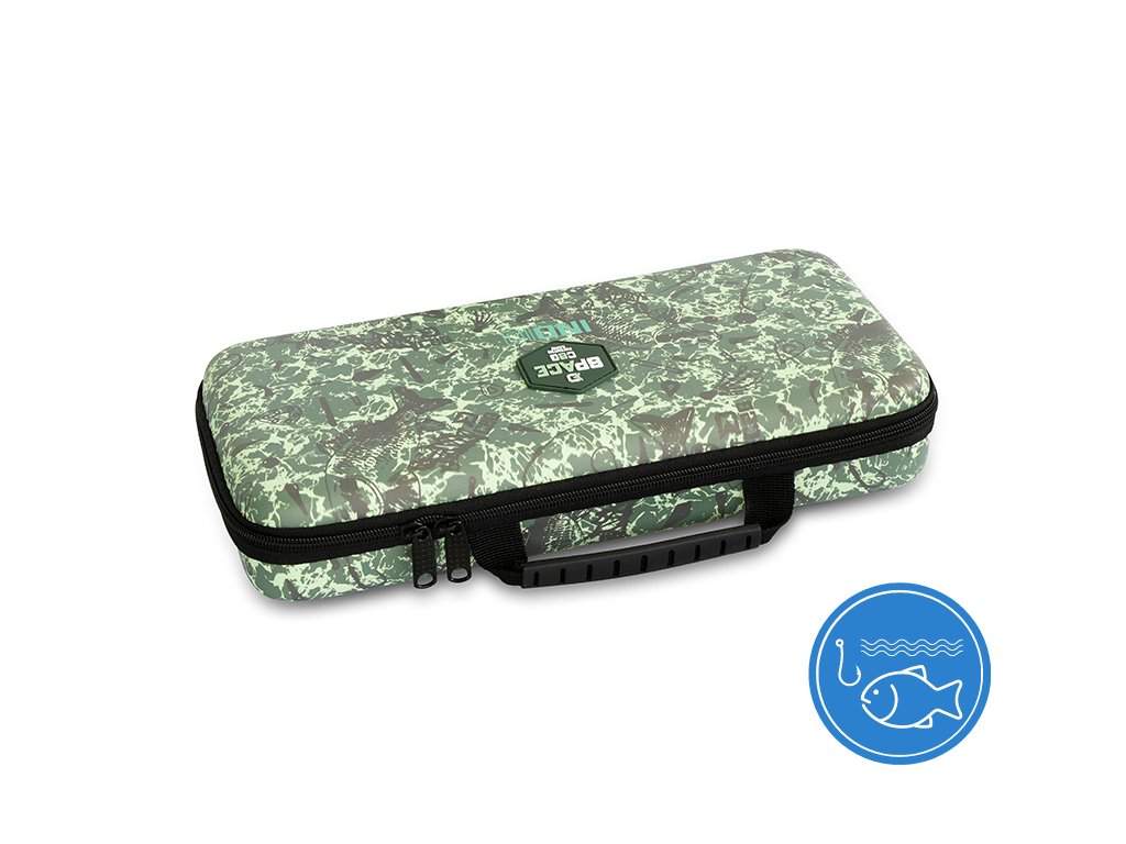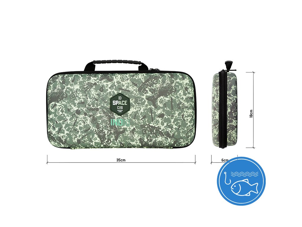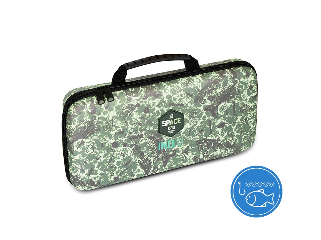 S pouzdrem IndIQ budou vaše signalizátory záběru perfektně chráněny a organizovány, takže si je vždy najdete nepoškozené, v dobrém stavu a připravené do akce. Je vyrobeno z tvrzeného materiálu s potiskem C2G, který je odolný, drží si tvar a lépe odolává vnějším vlivům než běžné látkové tašky. Kvalitní zip se dvěma běžci umožňuje zcela uzavření pouzdra. V přední části se nachází pogumované madlo, určené pro pohodlný přenos a vyjímání z větších tašek. Na tvrzené pěně uvnitř se nacházejí čtyři univerzální výřezy pro závěsné signalizátory, jako CAPRY, TRYO, SKIPER, ale i jiné signalizátory podobného typu, které jsou dostupné na trhu. Vrchní část má pěnovou výplň, která signalizátory fixuje a eliminuje tak možnost jejich nechtěného vypadnutí či poškození během přenosu. Delphin SPACE je označení pro exkluzivní sérii tašek z dílny značky Delphin. Vyznačuje se špičkovým zpracováním, kvalitními zipy, ale zejména výjimečným designem s použitím C2G kamufláže. Technické parametry Rozměry: 35x18x6cmDoplňkové parametry