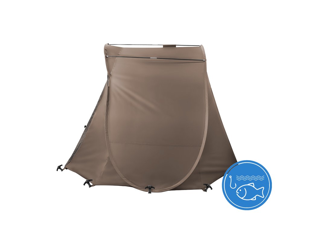 Vzhledem k požadavkům rybářů, kteří nemají dostatek času na dlouhé výpravy a upřednostňují spíše rychlé akce na jednu noc, přináší společnost Delphin na trh tento výjimečný a neuvěřitelně praktický „mini bivak“. Jeho podstata spočívá v takzvané „pop-up“ konstrukci, díky které jej lze extrémně rychle a bez námahy rozložit a složit. To je nespornou devizou u krátkých, rychlých vycházek, kde není zcela pohodlné nosit a rozkládat velký bivak. To ovšem není vše, co se týká výhod tohoto produktu. Jednou z nich je také rozměr bivaku a tvar ve složeném stavu. To jej umožňuje přepravovat vložený například ve složeném lehátku, díky čemuž nezabere prostor navíc a v případě potřeby tak bude pro vás mnohem snazší přenášení věcí na vzdálená, nedostupná místa. Přístřešek byl navržen rozměrově tak, aby se do něj vešlo jedno lehátko, přičemž stále zůstane prostor pro tašky, stolek a jiné potřebné příslušenství. Ve srovnání s jinými konkurenčními modely tohoto typu, má ten náš výrazný náskok díky větší hloubce, což znamená více místa pro vás a vaši výbavu. Přesto je velmi kompaktní a jeho rozměry tedy umožňují rozložit váš „camp“ i na velmi malých, těžko přístupných zarostlých místech. Jednoduše řečeno, všude tam, kde dokážete postavit lehátko, což by s velkým bivakem garážové konstrukce v mnoha případech možné nebylo. Vzhledem k tomu budete schopni pohodlně lovit na málo prochytávaných částech revíru a budete tak vždy o krok vpřed před ostatními rybáři. Navzdory svým kompaktním rozměrům překvapí po zakolíkování výbornou stabilitou a bez problémů snese i silnější vítr. Přední panel je osazen čtyřmi zipy, kterými je možno přizpůsobit si vchod, případně větrání podle potřeby. Také disponuje mosketeriovým oknem, díky kterému budete mít vždy přehled o tom, co se na vašem lovném místě děje. Na stropě bivaku je umístěn praktický háček, určený k zavěšení například lampy, případně bundy a podobně. Kapsa na zadní stěně zase umožňuje uschovat mobil, klíče, příposlech, které tak máte vždy po ruce. Pokud tedy patříte do skupiny rybářů, kteří rádi loví na hůře dostupných místech, případně upřednostňujete krátké rybaření, tak Delphin S1Quick se pro vás stane neocenitelným pomocníkem. Podlaha není součástí balení. Technické parametry: Celkové rozměry: 240x180x120cm Transportní rozměry: 75x75x10cm Hmotnost: 3kgDoplňkové parametry