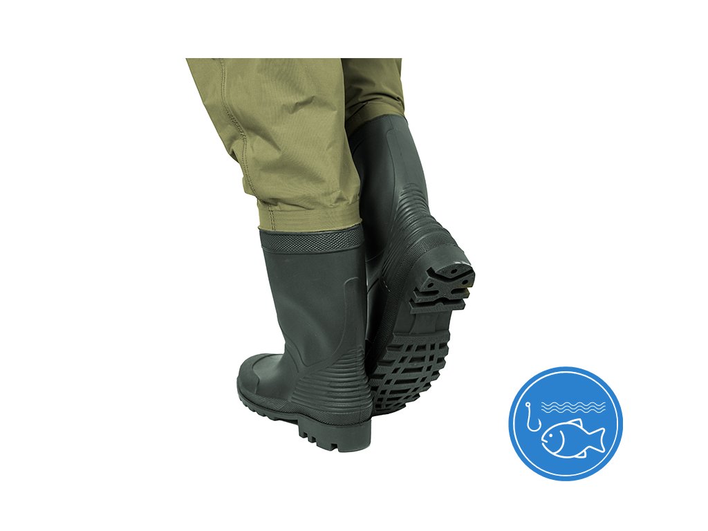 Delphin CLASSA jsou pohodlné a spolehlivé prsačky za velmi příznivou pořizovací cenu. Vyznačují se výbornými vlastnostmi a kvalitně zpracovanými detaily, jako jsou švy a spoje mezi materiály. Zvolený materiál je specifický svojí nízkou hmotností, flexibilitou a absolutní voděodolností. Díky těmto parametrům se v prsačkách CLASSA budete cítit komfortně i při zvýšené aktivitě. Kromě standardních nastavitelných popruhů na ramena, disponuje tento model také vyjímatelným páskem, což umožní ještě lepší přizpůsobení postavě rybáře. Velkou výhodou utaženého opasku je také omezení možnosti rychlého natečení vody do prsaček v případě nežádoucího pádu při pohybu ve vodě. Gumové holínky s odolnou a stabilní podrážkou vám umožní pohodlné brodění v různých podmínkách. Samozřejmostí jsou také výčnělky v oblasti paty pro snazší zouvání. Složení: taslon/PVCDoplňkové parametry