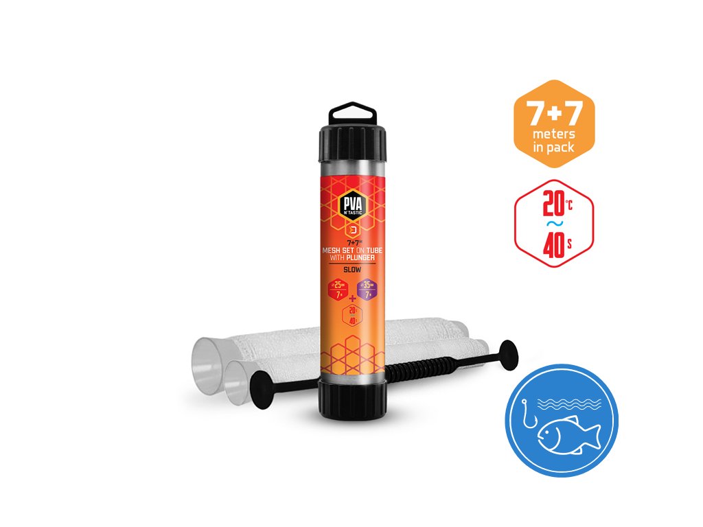 Praktické 2v1 balení, které se skládá z kombinace 25mm a 35mm punčoch s tubami a plničem. PVA punčocha s prodlouženou dobou rozpadu je ideální pro lov během teplejších měsíců, nebo při lovu ve větších hloubkách, kde montáž klesá déle ke dnu. Jedná se o vysoce kvalitní produkt vyrobený v EU, při kterém díky důkladnému pletení nedochází ke svévolnému trhání punčochy a zároveň se výborně plní i velmi jemnými částicemi, čímž budete moci spolu s nástrahou poslat do vody i maximálně atraktivní návnadu přímo na montáži. Součástí balení jsou dvě tuby a tlouk, které umožňují snadné plnění punčochy vnadící směsí. PVA punčocha se po čase přímo úměrném teplotě vody rozpustí, a tak uvolní krmnou směs v bezprostřední blízkosti nástrahy, čímž výrazně zvýší její atraktivnost pro kaprovité ryby. Upozornění: PVA produkty jsou vodou rozpustné, manipulujte s nimi proto jen se suchýma rukama, aby nedošlo k jejich deformaci či poškození. Technické parametry: Průměr: 25mm(úzká), 35mm(široká) Délka: 7+7m Doba rozpustnosti: cca 40s/20°C vodaDoplňkové parametry