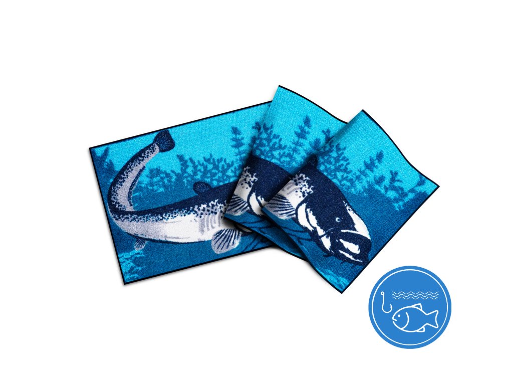 Excelentní rohož CatchMe! SUMEC. Určitě potěší každého rybáře. Tato rohož je vyrobena z odolného materiálu, okraj je obšitý modrým šitím a ze spodní části je ošetřena latexovou vrstvou. Rozměr 60x40 cm je velmi kompaktní a hodí se před všechny vstupní dveře. Ukažte návštěvě už u vchodu kdo je doma pánem :) Unikátní dizajn zobrazující sumce určitě zahřeje srdce nejednoho sumčaře.Doplňkové parametry