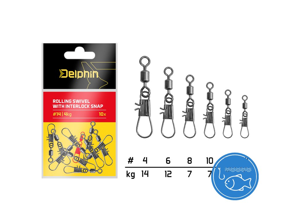Odolné karabinky s obratlíkem sloužící k rychlé výměně přívlačové nástrahy nebo zátěže. Deskové pouzdro a zaskakovací pevný drát zajišťuje stoprocentní spojení a eliminuje otevření karabiny. Obratlík zamezuje kroucení vlasce během navíjení. K dispozici je šest různých velikostí s různou nosností.Doplňkové parametry