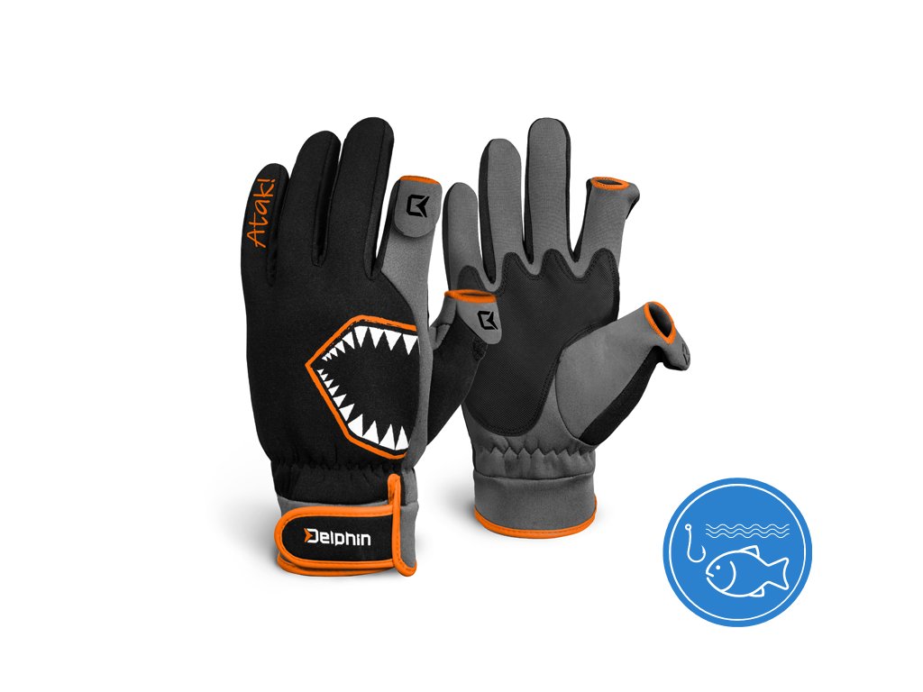 Přívlačové neoprenové rukavice Delphin Atak! Free udrží vaše ruce v teple i v těch nejchladnějších dnech. Detailní zpracování rukavic posouvá level zimního rybaření na zcela jinou úroveň. Velkým pozitivem je i zpevněná plocha na dlani, která je vybavena protiskluzovou vrstvou a umožní vám pohodlný lov během celé vycházky k vodě. Odnímatelné konečky na konci palce a ukazováčku, Vám usnadní manipulaci s drobnou bižuterií, či urychlí úpravu montáže. Aby se Vám do rukavic nedostával chlad či nechtěná voda, jejich utěsnění je tvořeno všitou gumou a dodatečně přizpůsobitelným dotahovacím pásem se suchým zipem. Nadčasový vzhled v Atak! designu nenechá chladného žádného příznivce přívlače.Doplňkové parametry