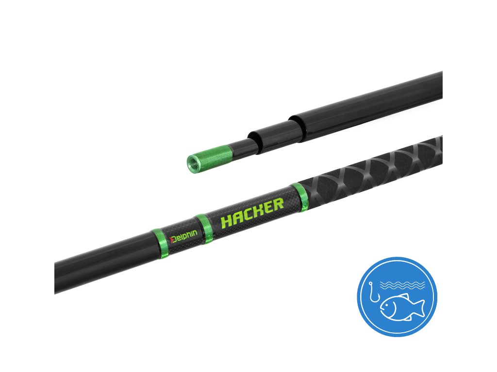 Teleskopická rukojeť Delphin Hacker NXT je skvělým nástrojem pro každého rybáře, který chce pohodlně vylovit zdolanou rybu. Nejdelší varianta 3,2m je vhodná zejména jako pomůcka při lovu s delšími pruty, své uplatnění však najde i při lovu z hůře dostupných míst nebo vyšších břehů. Verze 2,6m a 2,1m se vyznačují všestranností a lze je využít napříč různými rybolovnými technikami. Univerzální závit umožňuje upevnění různých standardně vyráběných feederových či plavačkových hlav. Rukojeť je vyrobena z lehkých a pevných materiálů, které zajišťují odolnost a nízkou hmotnost. Hacker NXT je proto skvělým a užitečným doplňkem pro každého rybáře, který si chce usnadnit a zefektivnit své rybářské zážitky. Technické parametry: Model 210cm/178g Materiál rukojeti: uhlíková vlákna Celková délka rukojeti: 210cm Počet dílů: 2 Transportní délka:114cm Hmotnost:178g Model 260cm/228g Materiál rukojeti: uhlíková vlákna Celková délka rukojeti: 260cm Počet dílů: 2 Transportní délka:136cm Hmotnost:228g Model 320cm/342g Materiál rukojeti: uhlíková vlákna Celková délka rukojeti: 320cm Počet dílů: 3 Transportní délka: 115cm Hmotnost: 342gDoplňkové parametry