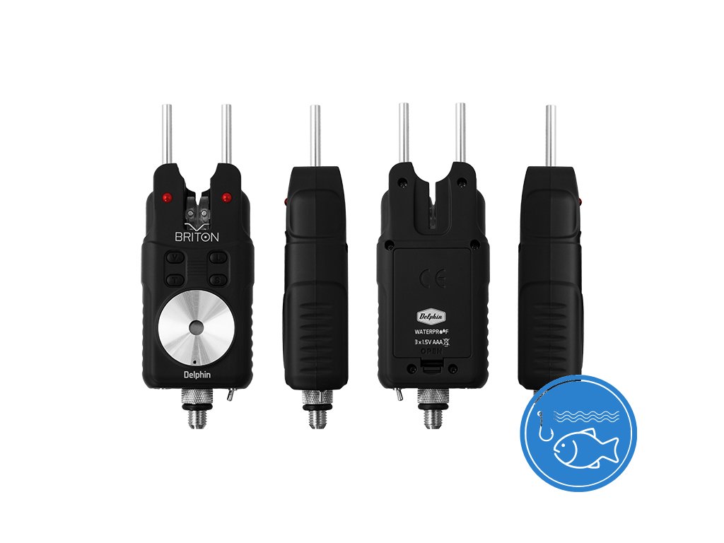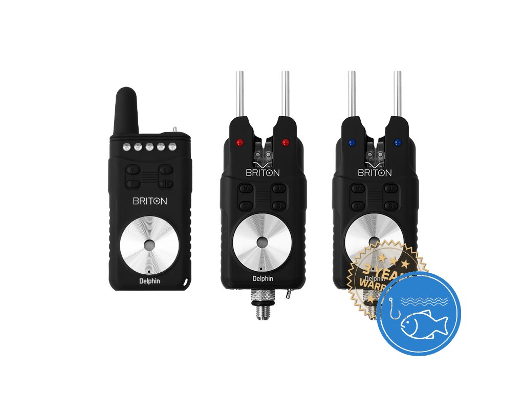 Excelentně zpracovaná sada, která je promyšlená do nejmenšího detailu. Už na první pohled vás osloví minimalistický design, který je nadčasový a který tuto sadu předurčuje k tomu, aby i po letech používání vypadala stále aktuální a neotřele. První dotek se sadou je také nadmíru pozitivní. Použité jsou díly bezchybného zpracování, všechny lícují, zpracování je na velmi vysoké úrovni a použité jsou ty nejkvalitnější materiály, včetně ušlechtile zpracovaných hliníkových krytů reproduktorů. Ty jsou jednoznačně tím nejsilnějším designovým prvkem této sady. Všechny plastové části jsou zase hodnotně pogumované, což evokuje dojem výrazně dražších sad. Komplikovaný přístup k bateriím přes neforemné kryty je minulostí. BRITON se vyznačuje velmi dobrým přístupem k napájení, a tím přispívá k velmi rychlému osazení baterií před lovem. Přijímač i signalizátor jsou oba shodně napájeny třemi kusy baterií typu AAA. BRITON navíc v dlouhodobých testech vynikal neskutečně dlouhou výdrží baterií a byl testován opravdu v těch nejextrémnějších výkyvech počasí (-25 ° C až + 35 ° C). Sada má v závislosti na podmínkách (okolní terén, hustota porostu, kapacita baterií) reálný dosah až přes 200m! Navíc díky speciálnímu tvarování těla a překrytí elektroniky i výbornou odolnost vůči vodě. Ani hustý déšť napříště nepřeruší spojení vašeho přijímače se signalizátory. Spuštění probíhá pomocí pákových přepínačů. To zaručí, že bez nejmenšího problému dokážete sadu ovládat i v naprosté tmě. Navíc je statisticky tento mechanismus mnohem méně náročný na poškození. U přijímače i signalizátoru máte na výběr až z 8 různých tónů a 8 různých úrovní hlasitosti (včetně tichého módu). U přijímače je samozřejmostí vibrační mód, indikace slabé baterie a uchovávání nastavení v paměti. Pro komfortnější přenos je grátis popruh na ruku. Signalizátor poskytuje možnost podsvícení rolničky, osazení tzv. uší (snag gears), 5 úrovní citlivosti (od 0.8 až po 4.0cm), indikaci slabé baterie a vstup pro 2.5mm jack. Také nastavení uchovává v paměti. Rolničku lze mechanicky zablokovat pomocí magnetu, a tím pádem sada při osazování na rodpod nesignalizuje falešné záběry. Při koupi kompletní sady dostáváte automaticky pevný kufřík a podrobný návod v několika jazycích. Už po prvním použití sady však budete nadšeni, jak jednoduše probíhá celé její ovládání. Za kvalitou sady Delphin BRITON si jednoznačně stojíme. I to je důvod, proč poskytujeme na tuto sadu záruku až 3 roky!Doplňkové parametry