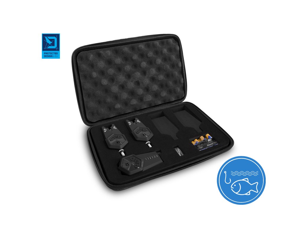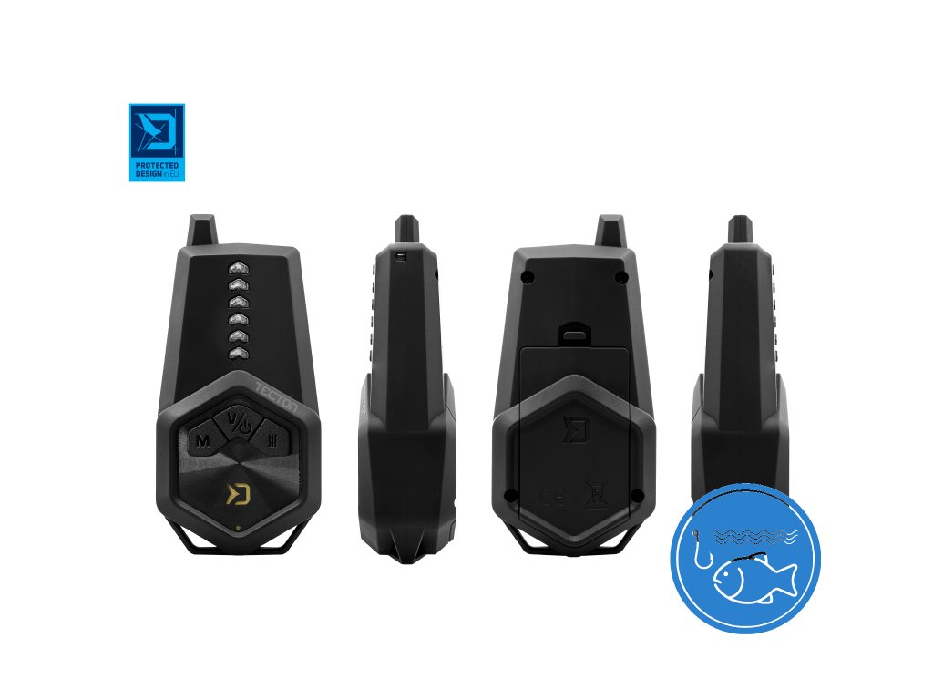 Od prvotního konceptu až po finální produkt prošla opravdu dlouhá doba. Vývoj, konzultování, designování a testování na různých Evropských vodách. To vše předcházelo uvedení sady TECTON na trh. Jedinečný vzhled z dílny designérů značky Delphin se spojil s inovativním vývojem a spolehlivou elektronikou, což v konečném důsledku vytváří vysoce funkční, originální sadu s bezkonkurenční cenou. TECTON disponuje všemi nezbytnými vlastnostmi pro plnohodnotný lov během vašich výprav za kapry. Základem je spolehlivá světelná, zvuková či vibrační signalizace záběru za jakýchkoliv povětrnostních podmínek. Nechybí ani důležité funkce jako možnost nastavení tónu, hlasitosti či citlivosti. Samozřejmostí v tomto případě je také absolutní voděodolnost a excelentní výdrž baterií. Tělo signalizátorů a příposlechu je vyrobeno z pevného plastu, což zaručuje vysokou odolnost vůči mechanickému poškození. Plast je navíc potažen jemnou pogumovanou vrstvou, čímž je velmi příjemný na dotek a vytváří dojem podstatně dražší sady. Signalizátor je vybaven třemi tlačítky. Pomocí tlačítka uprostřed je možné jej zapnout, resp. vypnout. Při delším podržení středového tlačítka se sepne podsvícení záběrového kolečka, což vytváří ve tmě velmi pěkný vizuální efekt a zároveň slouží jako noční dioda, která v noci umožňuje snadnou detekci umístění prutů. Krátkým mačkáním středového tlačítka je navíc možné zvolit jeden z osmi tónů. Pro zpětný záběr, resp. „padák“ budete upozorněni odlišným tónem signalizace. Pomocí tlačítka umístěného na signalizátoru vlevo (V) navolíte požadovanou hlasitost, včetně tichého módu. Tlačítko napravo (S) umožňuje vybrat jednu z 5 úrovní citlivosti. Součástí signalizátorů jsou odnímatelné snag gears, které se postarají o to, aby prut při prudkých záběrech v žádném případě nemohl „vyletět“ ze signalizátoru. V základní sadě 2+1 se nachází spolu s příposlechem červený a modrý signalizátor, ale v případě TECTONU je možné dokoupit až čtyři další barvy (žlutá, zelená, fialová, bílá). To dává možnost pořídit si k sadě signalizátory s barvou diody, jakou preferujete. To ovšem není jediná výhoda širokého spektra barev. Pozornému oku určitě neujde, že na přijímači se nachází až šest diod, což umožňuje spárování šesti různých signalizátorů TECTON na jeden příposlech, kdy různé barvy signalizátorů zajisté oceníte. Samotný příposlech se vyznačuje spolehlivým přijímáním signálu, v závislosti na podmínkách až do vzdálenosti 200 metrů. Disponuje možností nastavení jedné z 8 úrovní hlasitosti a možnosti zapnutí či vypnutí vibrací při záběru. Tón signalizace na přijímači je totožný s tónem, který jste si zvolili na jednotlivých signalizátorech. Pro zpětný záběr, resp. „padák“ budete upozorněni odlišným tónem signalizace. Do detailů propracovaný tvar jej umožňuje svisle položit například na stolek nebo zavěsit za popruh s poutkem (součást balení). Všechna zvolená nastavení signalizátoru i přijímače se uchovávají v paměti. Sada TECTON je napájena pomocí AAA 1,5V baterií (3x pro příposlech, 2x pro signalizátor) a při jejich nízké kapacitě vás signalizátor i příposlech upozorní blikáním v 5 sec. intervalech. Sada je dodávána v praktickém kufříku, který se postará o její bezpečnost během transportu. Technické parametry: Sada 2+1 obsahuje: - 2x Signalizátory záběru - 1x Přijímač - 1x Transportní kufřík - 2x snag gears - 1x poutko na zavěšení - 7x baterie AAA 1,5 V k otestování funkčnosti funkcí Přijímač/funkce - Voděodolný - 8 úrovní hlasitosti, včetně tichého módu (tlačítko V) - 8 různých tónů signalizace (stejný tón jako na signalizátoru) - Vibrační mód (tlačítko “vibrace“) - 6 barevných signalizačních LED diod - Zvolená nastavení uchovává v paměti - Indikace slabé baterie blikáním v 5 sec. intervalech - Párování/vymazání párování (tlačítko M) - Dosah 200m v závislosti na terénu - Napájení 3x1,5V baterie (AAA) Signalizátor/funkce - Voděodolný - 8 úrovní hlasitosti, včetně tichého módu (tlačítko V) - 8 různých tónů signalizace (tlačítko T) - 5 úrovní citlivosti (tlačítko S) - Zvolená nastavení uchovává v paměti - Signalizace zpětného záběru - odlišný tón - Paměťová dioda - svítí nepřetržitě 15 sec. po záběru - Indikace slabé baterie blikáním v 5 sec. intervalech - Podsvícená rolnička - Možnost osazení snag gearů (součást balení) - Vstup pro 2.5mm konektor - Napájení 2x1,5V baterie (AAA) V kufříku sady Tecton navíc naleznete zdarma i set základních baterií. Slouží k otestování modelu a funkcí při koupi produktu. Pro používání na rybách doporučujeme zakoupit nový set baterií. PROTECTED DESIGN - Tento produkt byl kompletně navržen designéry značky Delphin. Jeho design a technické řešení jsou natolik unikátní, že je registrován a chráněn na území celé Evropské unie.Doplňkové parametry