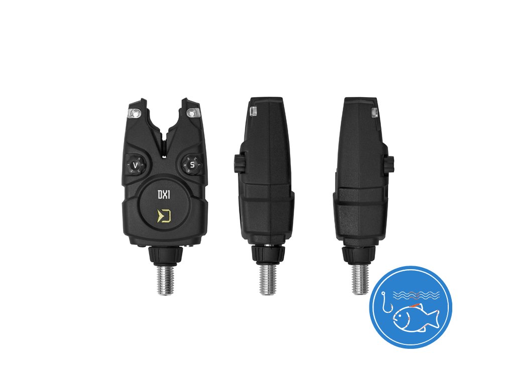 Rozměrově kompaktní signalizátor, který navzdory své příznivé ceně nabízí skvělou spolehlivost a 100% funkčnost. Signalizátor DX1 je napájen 1x12V baterií typu LR23A, která disponuje dostatečně dlouhou výdrží. V případě slabé baterie vás signalizátor upozorní krátkým pípnutím. Pomocí spínače "V" je možné vybrat jednu z 5 úrovní hlasitosti, včetně tichého módu. Také si lze navolit požadovaný tón a úroveň citlivosti, které mají také 5 různých úrovní. Nespornou devizou signalizátorů ze sady DX1 je možnost výběru ze 7 barev signalizační LED diody. Každý si tak vybere svou oblíbenou a pokud zatoužíte po změně, tak si jednoduše zvolíte jinou barvu dle návodu. Všechny zvolené nastavení si DX1 uchovává v paměti. Na zpětný záběr vás upozorní odlišný tón a po každém záběru se rozsvítí na dobu 15 sekund paměťová dioda. Ve spodní části se nachází vstup pro 2,5 mm konektor pro připojení svítícího indikátoru. Během nočního lovu lze zapnout také poziční diodu. Samozřejmostí je voděodolnost, díky čemuž se na něj můžete spolehnout v jakýchkoliv podmínkách. Upozornění: Signalizátor má část elektroniky společnou se sadou Coder, díky absenci vysílače však tento signalizátor se sadou nespárujete. Přesto je v elektronickém kódu funkce test dosahu. Nespouštějte proto nikdy signalizátor s tlačítkem S na pozici 5, protože by se funkce doprovázená blikáním spustila a to by vás mohlo zmást.Doplňkové parametry