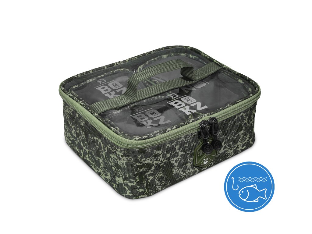 Delphin SPACE je označení pro exkluzivní sérii tašek z dílny značky Delphin. Vyznačuje se špičkovým zpracováním, kvalitními zipy, ale zejména výjimečným designem s použitím C2G kamufláže. Důmyslně navržený set, který se skládá ze čtyř samostatných tašek ve stylovém C2G provedení. Právě to je Delphin BOKZ SPACE, vyznačující se vysokou variabilitou a praktičností. Jednotlivé tašky jsou vyrobeny z kvalitního a odolného materiálu, tak jak to je standardem u celé série SPACE. Spodní a boční stěny jsou navíc polstrovány 6 mm silnou výstelkou, díky čemuž bude příslušenství uvnitř dokonale chráněno před nárazy či poškozením. Základem setu je největší taška velikosti XL, do které perfektně pasují menší taštičky BOKZ. Je tedy jen na vás, jestli ji budete využívat jako samostatnou tašku na rybářské příslušenství, nebo ji použijete v kombinaci s jednou nebo rovnou všemi BOKZ taškami. V tomto případě se variabilitě opravdu meze nekladou! BOKZ XL navíc disponuje oddělitelnou středovou přepážkou na suchý zip, pomocí které si umíte vnitřní prostor upravit dle vlastních potřeb. Velikostně druhou v pořadí je taška s označením L. Svými parametry se ideálně hodí pro uložení menších komponentů, ať už bižuterie, závaží, nástrah, atp. Podobně jako XL, i velikost L je vybavena oddělitelnou přepážkou, umožňující upravení vnitřního prostoru. Nejmenšími členy z rodiny BOKZ jsou dvě taštičky s označením M. Díky jejich rozměrům zaberou jen minimální prostor ve vaší výbavě, ale bez problémů do nich sbalíte všechny drobné součásti, potřebné k sestavení koncových montáží. Každá taška ze setu disponuje praktickým transportním madlem, kvalitními zipy, ale zejména průhledným vrchem, díky čemuž máte vždy dokonalý přehled o tom, co se uvnitř nachází. Technické parametry: Rozměr XL: 27x22x10 cm Rozměr L: 20x12x8 cm Rozměr M: 12x10x8 cm Stylová patentovaná kamufláž z dílny značky Delphin pod označením C2G má mnoho podob a úhlů pohledu. Přesně tak i její název, který můžeme volně přeložit jako Carpath 2. generace, což přímo odkazuje na jejího předchůdce, ale můžeme jej číst i jako Carpath to Green, tedy přechod myšlenky Carpathu do zelené barvy. Její jedinečnost a nezaměnitelnost spočívá v prvcích, ze kterých je vytvořena. Na první dojem jde o kamufláž tvořenou třemi různými odstíny zelené. Všechno se však změní při detailnějším pohledu, kdy si všimnete siluety kaprů, komponent kaprařské montáže a log značky Delphin spolu s označením C2G. Díky tomuto neopakovatelnému provedení se vaše rybářská výbava okamžitě stane jedinečnou a maximálně originální.Doplňkové parametry