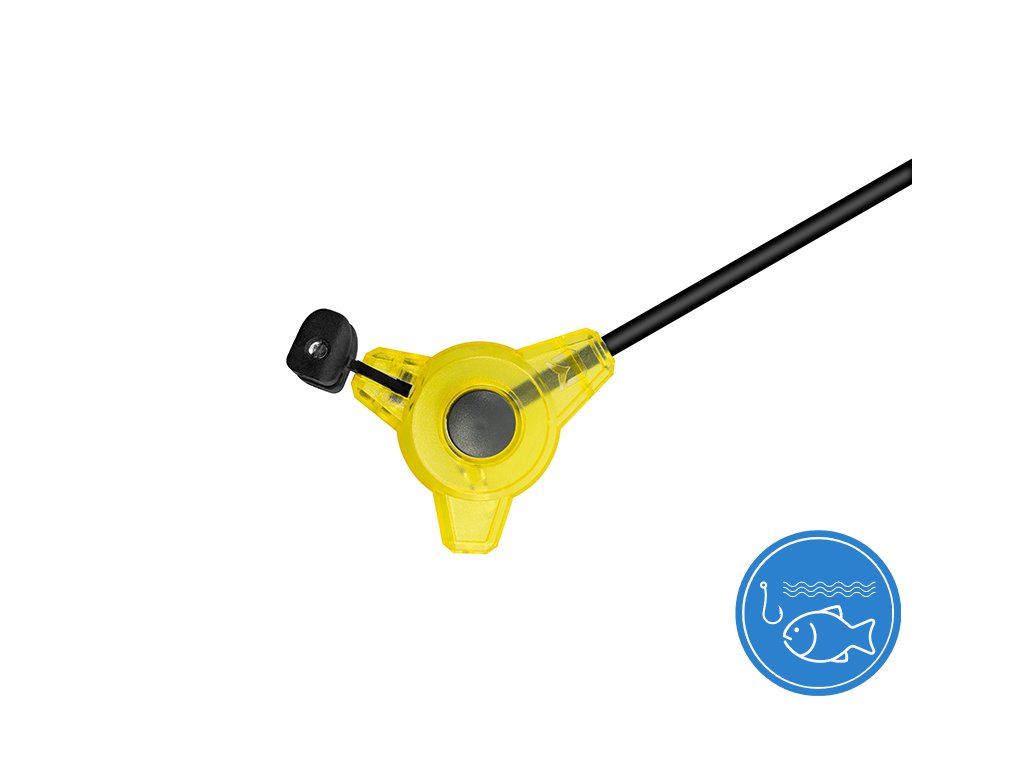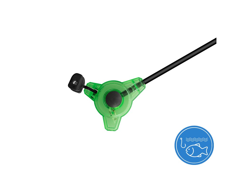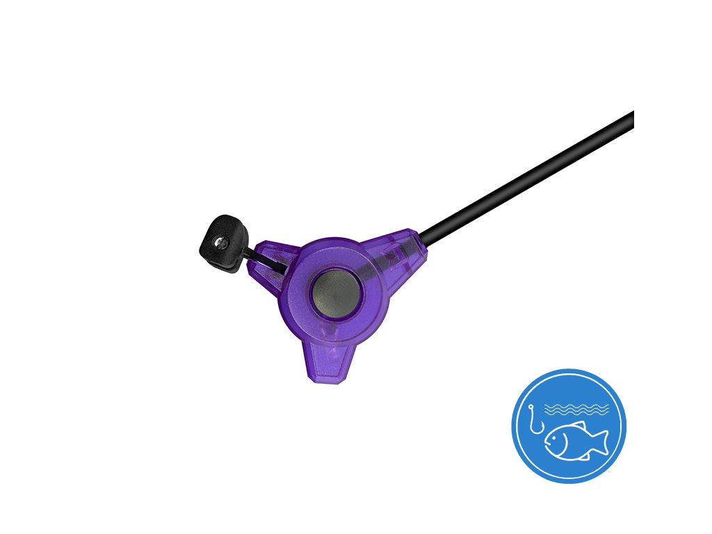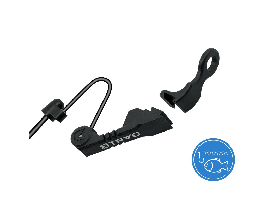 Originální a nezaměnitelný signalizátor záběru se zabudovanou LED diodou a prvky, které tento produkt posouvají o krok vpřed před jiné modely z daného segmentu. Hlava signalizátoru je navržena v jedinečném tvaru, který se již na první pohled výrazně odlišuje od jiných modelů nabízených na trhu. Podle nápadných tří rohů je pojmenována jako TRYO. Je osazena kuličkovým mechanismem s možností nastavení tlaku pomocí aretačního šroubu. Tím, že mechanismus je tvořen kuličkami, třecí plocha je minimální a proto nedochází ke stlačení vlasce během zasekávání. Hlava je vyrobena z tvrzeného, matného plastu pro zvýšenou odolnost vůči mechanickému poškození. Doslova revolučním přepracováním prošla uchycovací část ramínka signalizátoru, na kterou jsme jako první aplikovali dva důmyslně navržené prvky. Jedná se o obrovskou přednost kompletně navrženou inženýry vývojového oddělení značky Delphin. Prvním z nich jsou zářezy po bocích, které slouží ke snadnému uchycení kablíku během transportu. Díky tomu nebude docházet k nechtěnému motání či zachytávání o jiné komponenty výbavy. Tento prvek označujeme jako CABLE MANAGER. Druhým bonusem je drážka nazvaná ARM STOPPER. Zjednodušeně je to držák na spodní části nohy, plnící dva významné úkoly. První z nich je možnost zajištění kovového ramínka tak, aby po skončení lovu kompaktně drželo spolu s nohou. Největší devizou je však mnohem rychlejší zastavení kývání signalizátoru během záseku. Znamená to, že jakmile zvednete prut a vlasec se uvolní z hlavy, tak se TRYO velmi rychle zastaví ve svěšené poloze. Obvykle to našemu systému trvá jen 3-4 kmity. V porovnání s běžně prodávanými signalizátory, které jste dosud znali, to znamená mnohem větší životnost plastové nohy a kloubu, ve kterém je spojena s kovovým ramínkem. Samozřejmostí je posuvné závaží na kovovém rameni umožňující optimální vyšponování vlasce. Delphin TRYO je osazen konektorem pro zapojení do elektronického signalizátoru záběru. Po zapojení se při záběru rozsvítí vnitřní LED dioda, která vydává tlumené světlo podle barvy hlavy a umožňuje tak sledovat záběr i během noci. Jako bonus je k balení dodáván náhradní držák pro upevnění k elektronickému signalizátoru záběru. V případě ztráty nebo poškození tak máte k okamžité dispozici náhradní držák, bez nutnosti pořizování dalšího. Dostupné barvy hlavy: modrá, červená, zelená, žlutá, fialová, černá.Doplňkové parametry