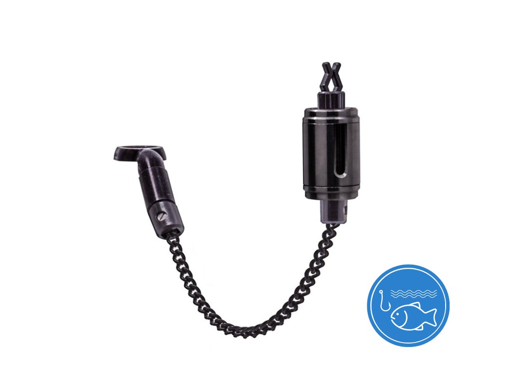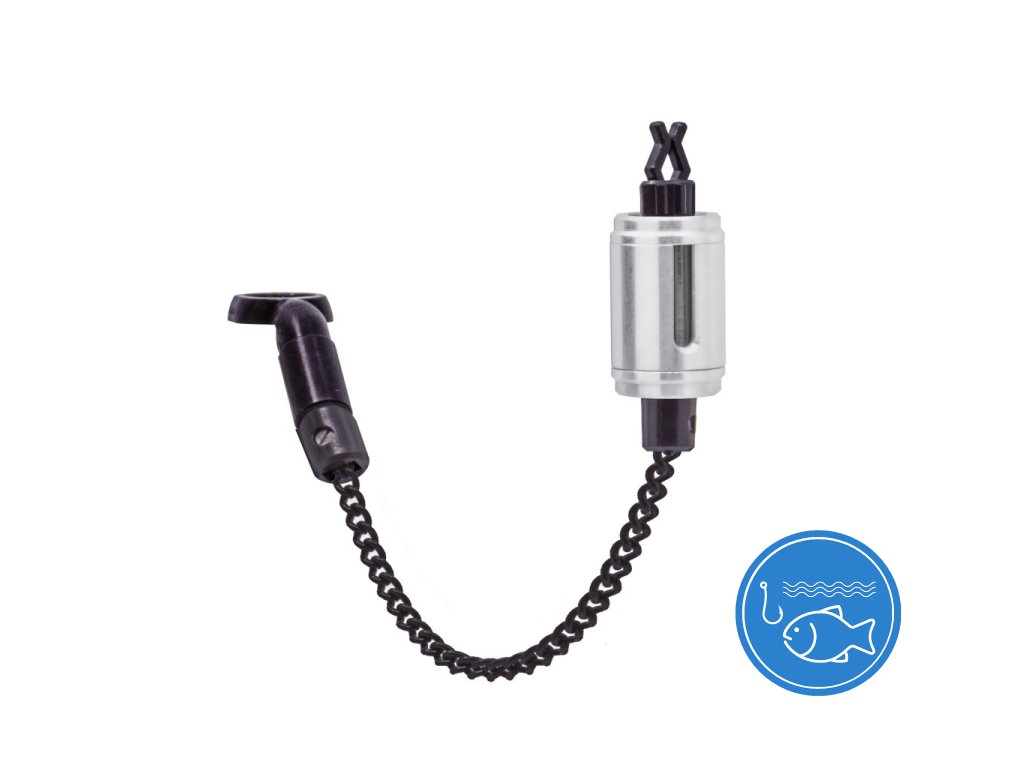Nezaměnitelný indikátor záběru Lock & Load s mikronastavitelným klipem na vlasec, s černě eloxovaným řetízkem a upínací „hokejkou“ pod signalizátor.