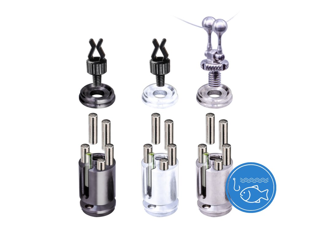 Dodáváno s osvědčeným mikronastavitelným klipem na vlasec, cca 13 cm černě eloxovaným řetízkem a taktéž černě eloxovanou upínací „hokejkou“ pod signalizátor. Na boku naleznete slot pro izotopové světlo.
