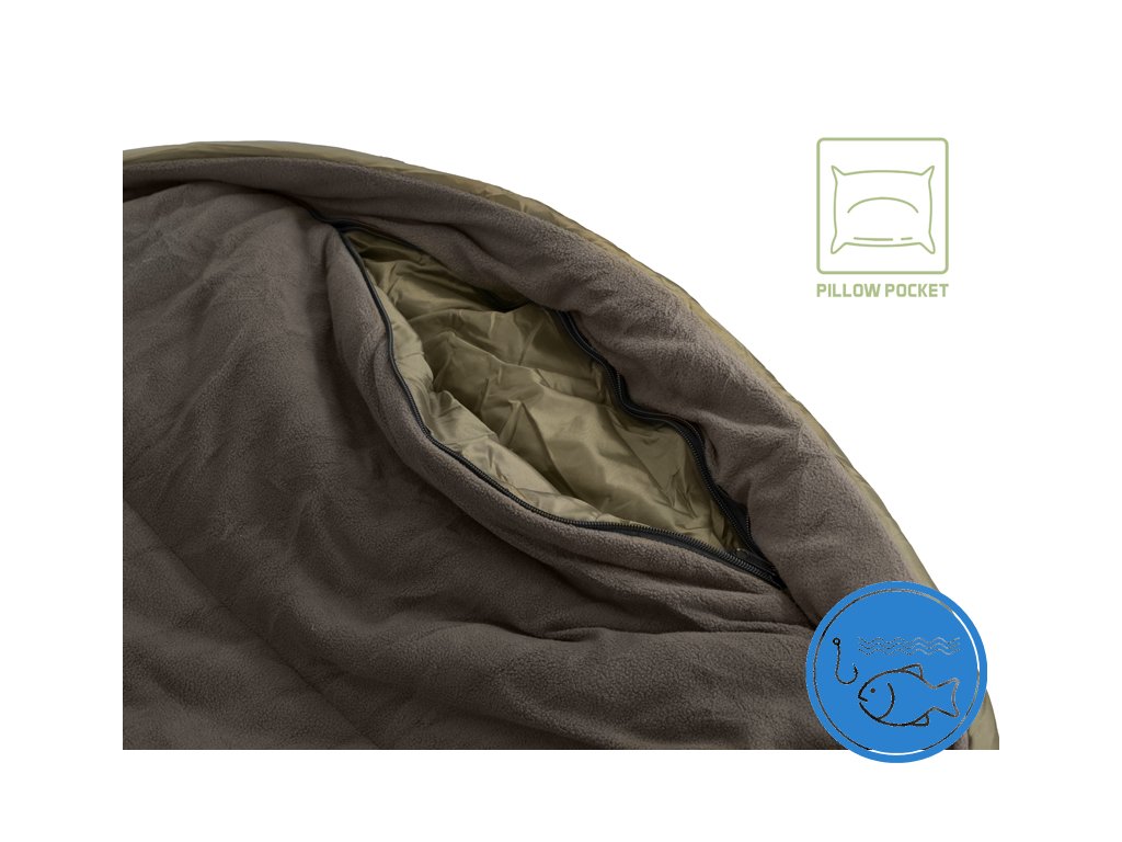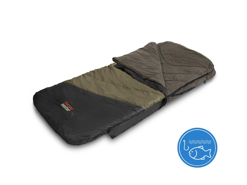 2 samostatné spacáky v jednom! ThermoMASTER je revoluční produkt s vlastnostmi, jaké se nevidí často. Je totiž tvořen až čtyřmi samostatnými vrstvami umožňujícími jeho použití jako extra hrubý a teplý zimní spací pytel, vhodný do teplot pod bodem mrazu. Avšak vnitřní dvě vrstvy lze kompletně odzipovat, vyjmout a použít je jako tenčí letní spací pytel pro Vaši polovičku nebo parťáka. Použili jsme při jeho výrobě odolnou a nepromokavou vnější tkaninu, díky které lze přespávat pod otevřenou oblohou i za deště a vlhkých chladných nocí. Navíc je snadno udržovatelná, takže ji lze snadno otřít a osušit. Přichycení spacáku na postel je zajištěno pomocí návleků na obou koncích a fixačního popruhu s pevným a mohutným klipem, díky kterým zůstane ThermoMASTER jako přikovaný ke lehátku za každých okolností. Všechny vnitřní vrstvy jsou tvořeny měkkým fleecem hnědé barvy, který je příjemný na dotek a také výjimečně hřejivý, takže se budete cítit komfortně i v extrémní zimě. Hlavní zip po obou stranách je mohutný, pevný a nezasekává se, čili pokud budete mít záběr, stačí potáhnout vrchní vrstvu a můžete utíkat za rybou. Zip na druhé straně si můžete zafixovat pomocí plastové pojistky ve tvaru spony. Mezi každou vrstvou se nacházejí další jemnější zipy umožňující využití kterékoli z vrstev dle vnějších podmínek a Vaší osobní preference. Všechny zipy jsou překryty lemem nepromokavé látky, a tím pádem chráněny před deštěm. V hlavové části se nachází kapsa vhodná pro umístění a uzavření jakéhokoli menšího polštáře. ThermoMASTER má zajímavý design v khaki a černé barvě s výraznou červeno-zelenou grafikou. Balen je v rozměrném černém vaku s popruhy a zatahováním na šňůrku. Technické parametry: Rozměry: 210x90cm Přepravní rozměry: 62x40x40cm Hmotnost: 6,8kgDoplňkové parametry