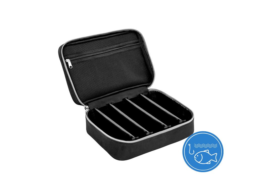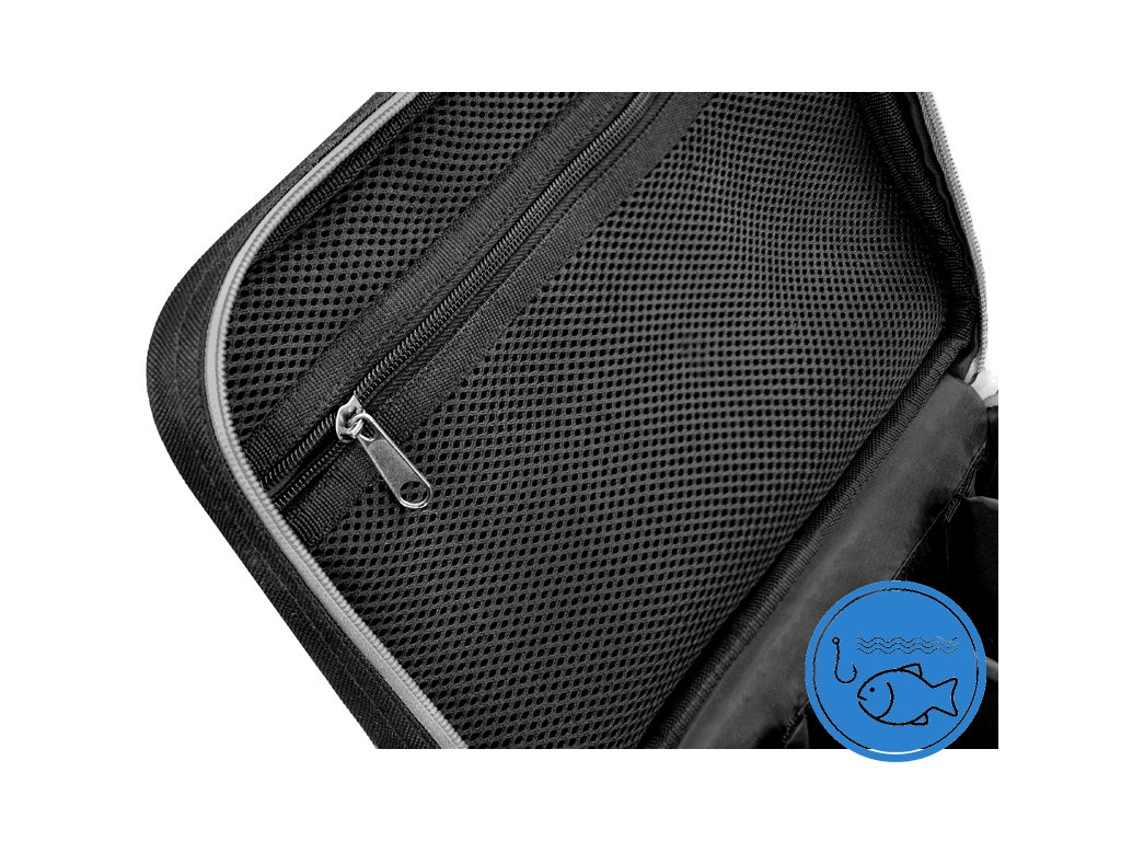 Jedinečná taška, navržená speciálně na uschování a transport feederových krmítek. Pevné, silně polstrované stěny umožňují do ní sbalit opravdu velké množství krmítek potřebných pro váš lov. Vnitřní prostor je rozdělený čtyřmi přepážkami. Všechny jsou však uchyceny pomocí suchého zipu, což znamená, že jsou odnímatelné / posouvatelné. Tato výhoda umožňuje dokonalé uspořádání vnitřního prostoru a vytvoření přihrádek podle potřeb. Navíc se na vnitřní straně víka nachází velká síťovaná kapsa, umožňující uložení dalších rybářských drobností, případně dokladů. Tak jak to bývá při taškovině Delphin již standardem, i FEEDCASE je opatřena kvalitními zipy s plastovými taháčky, které usnadňují otevírání a zavírání. Na pohodlné přenášení tašky poslouží rukojeť s EVA pěnou, která je umístěna ve vrchní části. Právě to je důležitý detail, protože nedochází k překlápění tašky a možnému míšení obsahu. Specifický design tomuto produktu dodává bordó barva víka, charakteristická pro naše produkty určené speciálně pro feeder. Technické parametry: Rozměry: 30x20x10cm Vnitřní kapsa: 29x19cm Počet přepážek uvnitř: 4ksDoplňkové parametry