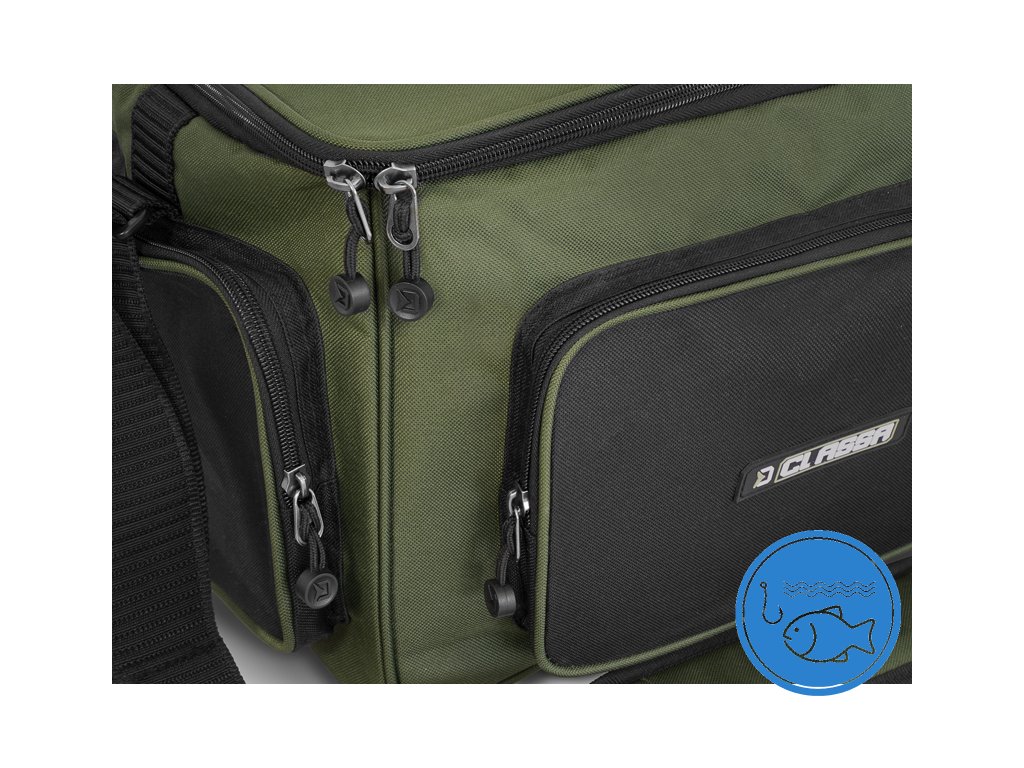 Taška Delphin Classa CarryALL XL je ideálním společníkem pro vaši rybářskou výpravu. Tato prostorná a funkční taška byla speciálně navržena pro organizaci a přepravu potřebného vybavení a oblečení na místo lovu. Je vyrobena z trvanlivých a odolných materiálů, které zaručují její dlouhou životnost a ochranu obsahu uvnitř před nepříznivými podmínkami. Taška je v rozích vyztužená, takže si zachovává svůj tvar, i když je prázdná. Spodní část je navíc opatřena gumovým materiálem, který zamezuje proniknutí vlhkosti z mokré země, a tak chrání vaše oblečení a vybavení před navlhnutím. Kromě hlavního úložného prostoru disponuje dvěma bočními a jednou přední zipovatelnou kapsou pro menší příslušenství. Pod víkem tašky se nachází praktická zipovatelná kapsa ze síťoviny. Hlavní prostor tašky je navržen tak, aby do něj bylo možno ukládat další tašky ze série CLASSA, SPACE či AREA. Taška je opatřena kvalitními zipy, jejichž běžce jsou opatřeny gumovými taháčky s logem Delphin. Tašku lze přenášet pomocí textilního úchopu na vrchní straně, nebo pomocí pohodlného popruhu pro nošení přes rameno. Technické parametry XL: Rozměr tašky: 45x35x25cm Čistý rozměr vnitřního prostoru: 38x28x23cm Rozměr přední kapsa: 25x17x3cm Rozměr boční kapsa: 20x17x3cmDoplňkové parametry