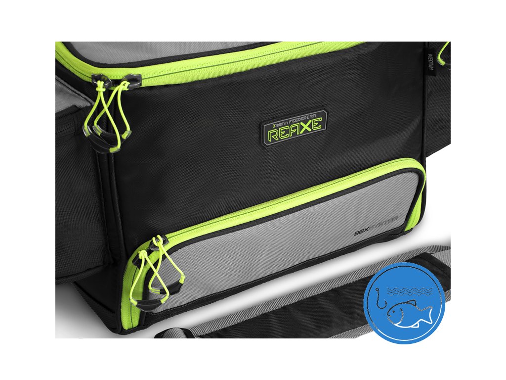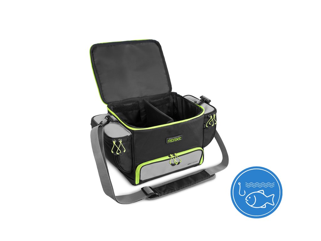 Praktická a všestranná feederová taška s množstvím přihrádek umožňující přehledné uložení Vašeho vybavení. Ve vrchní části se nachází velká přihrádka s přepážkou na suchý zip, kterou si můžete přesouvat po celé délce a tím modulovat přihrádku. Pod touto sekcí se nachází největší komora, ke které se dostanete z přední části tašky a naleznete zde 2 praktické plastové boxy na různé rybářské příslušenství. Po obou stranách tašky se nacházejí dvě rozměrné kapsy. Jedna z nich má termoizolační ochrannou vrstvu, díky které můžete v kapse uchovávat živou nástrahu a návnadu. Samozřejmě je dobré přidat také chladicí médium. vložky k cestovním chladničkám a pod. Druhá boční kapsa je vyrobena z klasické tkaniny a je vhodná pro ukládání různého menšího příslušenství. Tašku QuixBAG můžete nosit za praktickou rukojeť na vrchní části, nebo za popruh, který naleznete automaticky v balení. Taška je velmi kvalitně provedená a má masivní zipy s plastovými táhly. Designově je laděna tak, aby zapadla do série REAXE, tedy byla zvolena kombinace černé a šedé barvy s výraznými zelenými zipy a grafikou. Technické parametry: Rozměry: 41x30x25cm Rozměr vrchní přihrádky: 28x23x12cm Rozměry plastové krabice: 27x18x4cm Rozměry bočních sáčků: 20x15x7cmDoplňkové parametry