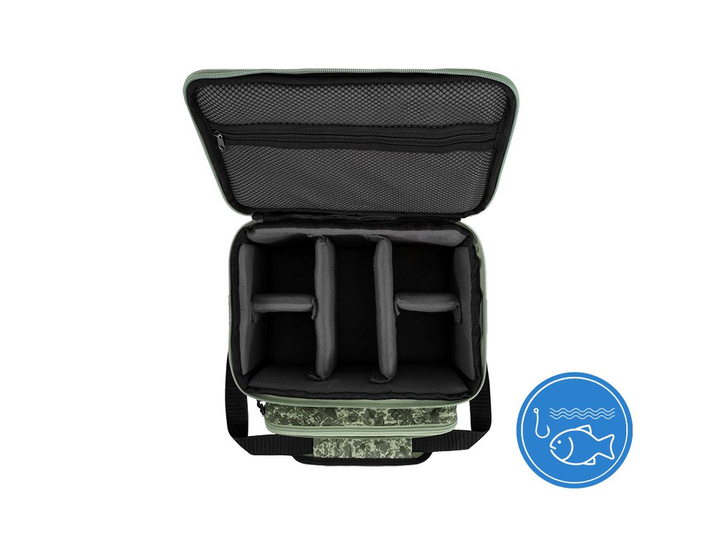 Delphin SPACE je označení pro exkluzivní sérii tašek z dílny značky Delphin. Vyznačuje se špičkovým zpracováním, kvalitními zipy, ale zejména výjimečným designem s použitím C2G kamufláže. Ať už jste profesionální fotograf nebo vášnivý rybář, který s oblibou zaznamenává zážitky z výprav, taška Delphin SPACE Photo and Video je ideální volbou pro přenos a ochranu vaší techniky. Tato taška byla navržena s důrazem na bezpečnost, ochranu a praktičnost. Vnitřní prostor tašky je rozdělen pomocí hrubě polstrovaných přepážek, díky čemuž lze uložit kameru či fotoaparát spolu s příslušenstvím tak, aby nedocházelo k jejich vzájemnému kontaktu. Pomocí suchých zipů lze přepážky libovolně umisťovat, a tak přizpůsobit vnitřní prostor přesně podle vašich požadavků. Vnitřní stěny, víko ale i samotné přihrádky jsou polstrovány až 10mm silnou pěnou a potaženy jemnou textilií pro dosažení maximální šetrnosti k vašemu vybavení. Spodní strana tašky je z vnější strany opatřena pogumovanou vrstvou, která zamezí prostupu vlhkosti ze země a spolu s voděodolným povrchem chrání techniku při položení na mokrou či špinavou zem. Kapsa ze síťoviny poskytuje prostor pro uložení drobného vybavení jako paměťové karty, nabíjecí kabely, či náhradní baterky. Praktická velká kapsa na přední straně navíc umožní uschovat další potřebné příslušenství. Samozřejmostí jsou kvalitní zipy s taháčkem s logem Delphin. Tašku lze komfortně přenášet pomocí textilní rukojeti umístěné na víku tašky a nastavitelným polstrovaným popruhem pro nošení přes rameno. Technické parametry: Vnější rozměry: 32x27x22cm Čistý rozměr vnitřního prostoru: 30x21x19cm Počet přihrádek: 1-5 Rozměr přední kapsa: 26x15x5cmDoplňkové parametry