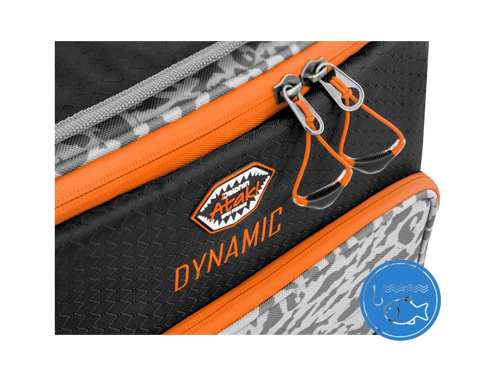 Praktická taška ze série ATAK! navržená zejména pro lovce dravých ryb, kteří rádi loví dynamicky a chtějí probádat všechna zajímavá místa revíru. Ve vrchní části tašky se nachází úložný prostor s nastavitelnou dělící přepážkou, díky které si vždy uspořádáte a uložíte věci tak, jak potřebujete. Na vnitřní straně víka je navíc prostorná zipovatelná kapsa, která také pojme část výbavy potřebné k lovu a díky síťovanému provedení budete mít vždy přehled o tom, co se v ní právě nachází. Spodní část tašky disponuje prostorem, ve kterém najdete dva praktické plastové boxy na nástrahy a jiné příslušenství. Boxy jsou od sebe odděleny odnímatelnou přepážkou a také uvnitř boxů se nacházejí přepážky, které lze uspořádat podle potřeby. Je tedy jen na vás, jak si celkový úložný prostor přizpůsobíte a co do něj uložíte. Po bocích tašky se nacházejí síťované kapsy, které obsáhnou různé drobnosti, a které jen podtrhují celkovou praktičnost tohoto produktu. Taška byla navržena s důrazem na praktičnost, trvanlivost a odolnost. Je ze všech stran osazena polstrováním pro maximální ochranu vašeho příslušenství uvnitř. Celá spodní část tašky je osazena vyztuženou, nepromokavou vrstvou, která dovoluje položení tašky na mokrý povrch. To ještě více přispívá k tomu, že taška je také na spodní straně mimořádně stabilní a drží si svůj tvar. Kvalitní vnější zipy oranžové barvy jsou opatřeny plastovými taháčky na oranžovém popruhu. Taháčky jsou na konci rozšířené, a proto je lze rychle uchopit. Doplňky oranžové barvy umožňují rybáři, aby byla taška dobře viditelná i za šera a věděl ji okamžitě najít. Taška je ušita z lehké, ale přitom odolné látky černé barvy. Vybavená je šedým popruhem určeným pro nošení přes rameno. Design tašky doplňuje naše jedinečná šedá ATAK! kamufláž se siluetami dravých ryb. Technické parametry: Rozměr tašky: 32x21x25cm Rozměr vrchního prostoru: 30x20x10cm Rozměr spodního prostoru: 30x20X10cm Rozměr bočního sáčku: 20x15cm Rozměr krabice: 27x18x4cm Plastový box Rozměr: 270x180x40mm Počet pevných přihrádek: 6 Rozměr přihrádky: 4,3 x 17,1 x 3,5 cm Počet vkladateľných složek: 12 Krabice kterou si můžete k tašce dokoupit: Krabice Delphin TBX One 273-6P-clipDoplňkové parametry