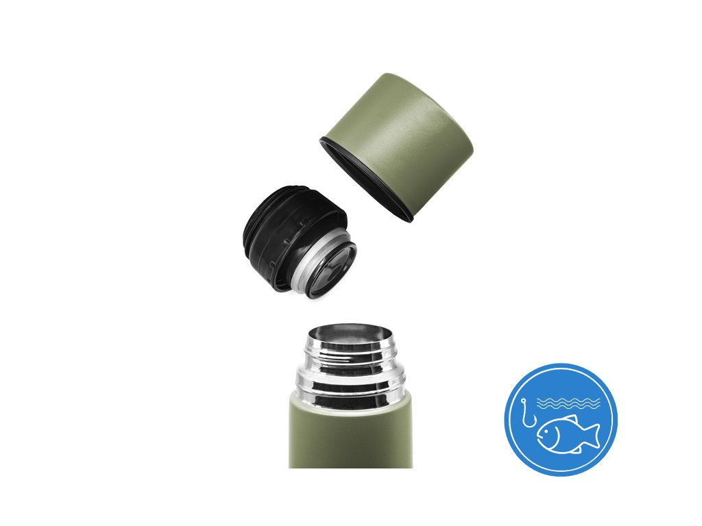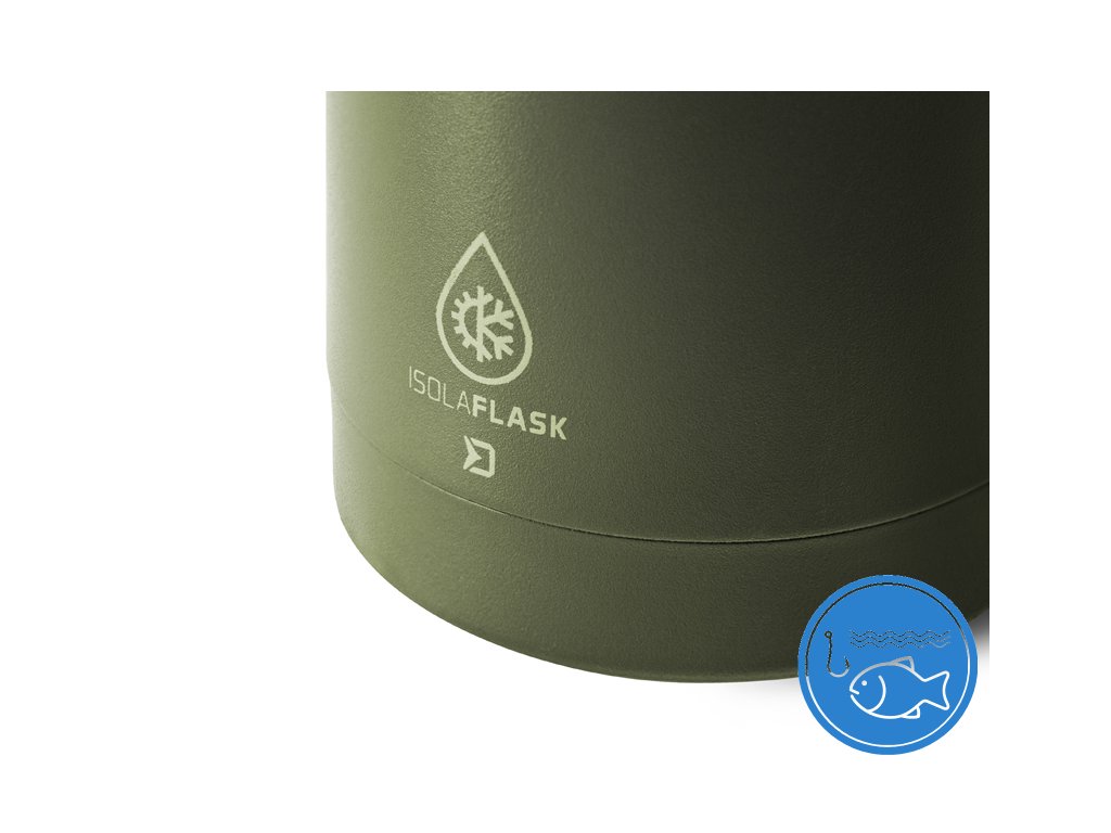 Pokud si chcete vychutnat šálek teplé kávy nebo čaje na rybách, či při sportu, neváhejte sáhnout po nové termosce Delphin IsolaFLASK. Dvouplášťová kovová konstrukce dokonale chrání teplotu tekutiny uvnitř, zároveň snese i hrubší zacházení a vyniká tak svou výjimečnou odolností. Samotný víčko slouží zároveň jako pohár, nezapomenete jej tedy nikdy doma! Pod uzávěrem se nachází zátka s takzvaným klik mechanismem, který umožňuje rychlé nalévání, ale zároveň dokonale zabrání rozlití v době nepoužívání. Delphin IsolaFLASK o objemu 750ml v zeleném designu Vám dokonale zapadne do kolekce C2G a už nikdy nezůstanete na suchu i v těch nejchladnějších dnech.Doplňkové parametry