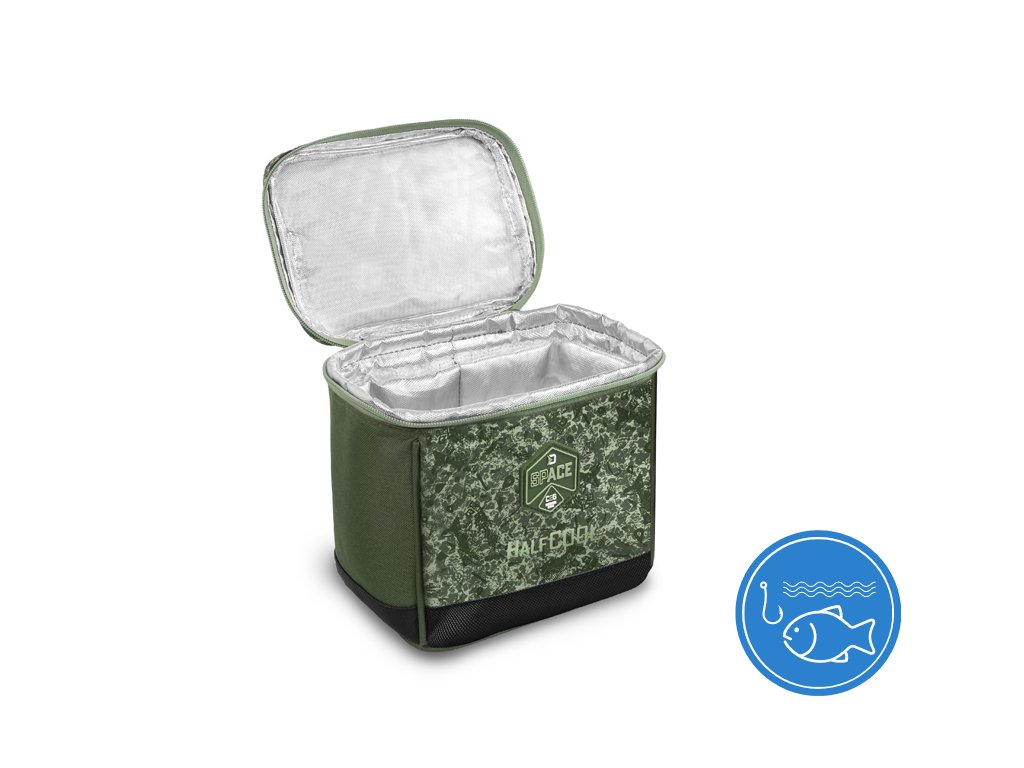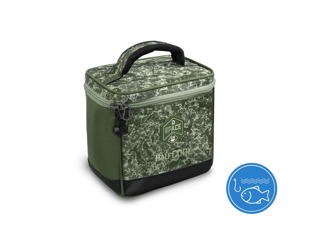 Delphin SPACE je označení pro exkluzivní sérii tašek z dílny značky Delphin. Vyznačuje se špičkovým zpracováním, kvalitními zipy, ale zejména výjimečným designem s použitím C2G kamufláže. HalfCOOL SPACE je praktická termotaška určená k přechovávání potravin nebo nástrah. Díky svým kompaktním rozměrům si své uplatnění najde při potřebě přechovávání menšího množství obsahu. Je tak vhodná i na krátkodobější rybaření či vycházky do přírody. Milovníci piva či jiných osvěžujících nápojů jistě ocení, že se dovnitř vejde přesně 6 plechovek. Stěny a víko tašky jsou důkladně polstrovány 6mm silnou výstelkou s termoizolační vrstvou na vnitřní straně. Tato vrstva zaručuje udržování teploty nezbytné pro přechovávání jídla, nápojů či nástrah. Izolační vrstva byla navíc navržena tak, že překrývá vnější okraj o 1cm a zároveň je všita i pod celý obvodový zip, což také napomáhá zamezování prostupu tepla z okolí do vnitřního prostoru tašky. Spodní strana je opatřena odolnou pogumovanou vrstvou, která zabrání vniknutí vlhkosti ze země a zamezí znehodnocení obsahu uvnitř. Pro maximálně pohodlné nošení je HalfCOOL SPACE vybaven měkce polstrovanou rukojetí, ale díky svým rozměrům se bez problémů vejde do jakékoli větší tašky či batohu. Technické parametry: Vnější rozměry: 24x21x20cm Čistý rozměr vnitřního prostoru: 21x20x15cmDoplňkové parametry
