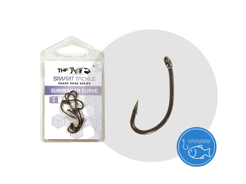 THE ONE SURRENDER CURVE je háček se zahnutým ramínkem, otočeným očkem a rovným hrotem ostrým jako jehla.