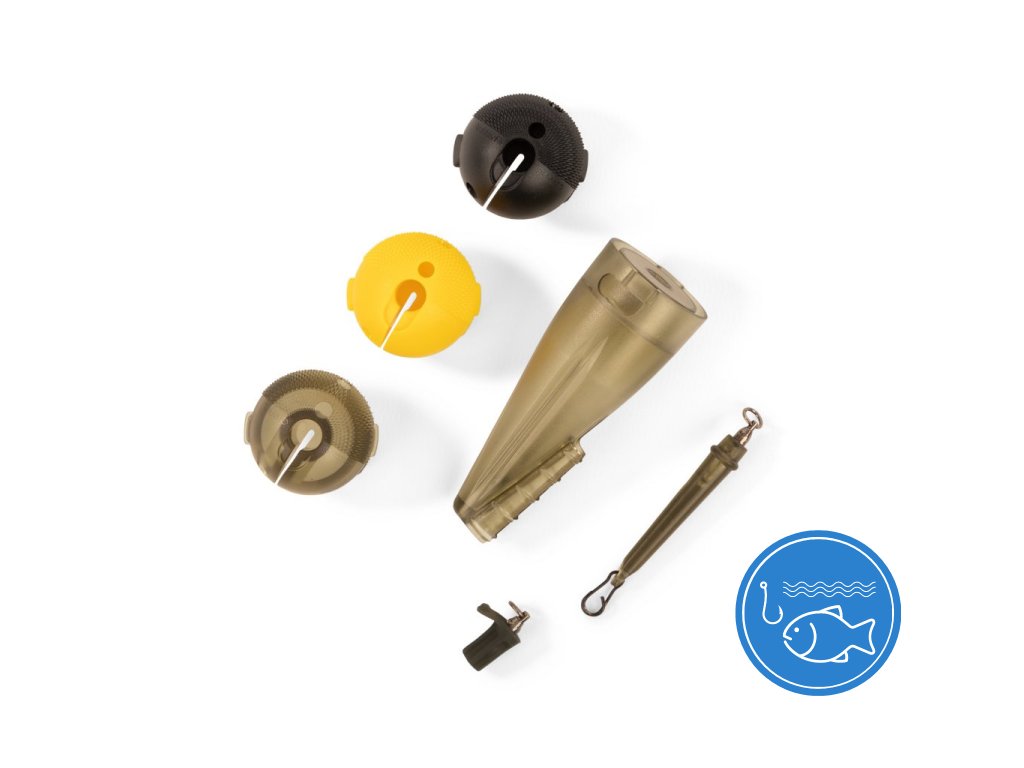 Obsah balení: 1× plovák, 1× dřík pro upevnění olova s ložiskovým obratlíkem, 1× zátka s ložiskovým obratlíkem, 3× uzavírací čepička (zelená – průsvitná, černá a svítivě žlutá) a 1× rychlovýměnná karabinka.