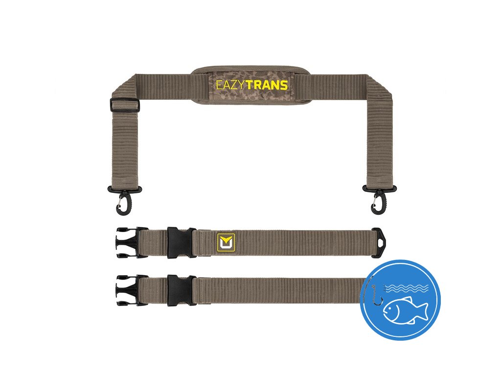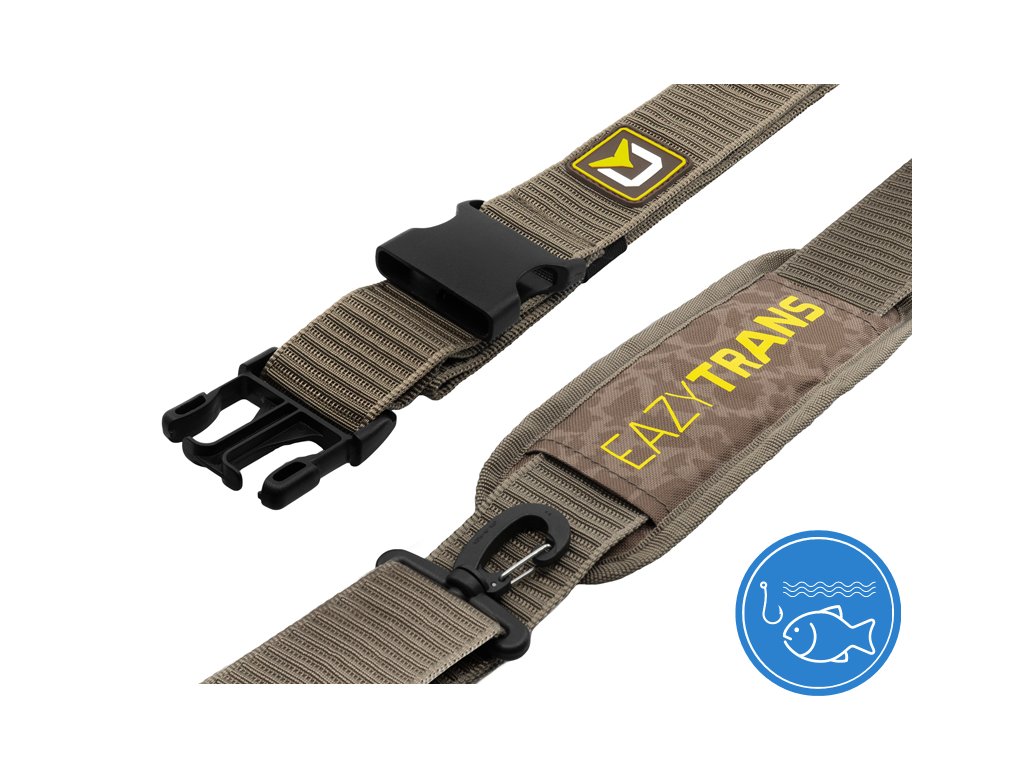 Neskutečně praktický, efektivní a zároveň zcela jednoduchý produkt, který nahrazuje neskladné a finančně náročné tašky! To je průlomový transportní popruh EazyTRANS z dílny firmy Delphin. Potřebujete přenést lehátko, křeslo, spacák, případně vše najednou? S tímto velmi pevným popruhem, to nebude žádný problém. EazyTRANS se skládá ze tří částí, které spolu tvoří jeden celek určený pro transport rybářské výbavy. Základem je ramenní popruh s vyztuženou měkčenou částí a velmi pevnými plastovými úchyty. Právě na tyto úchyty se upevní dva boční popruhy s nastavitelnou délkou, opatřené masivními klipy. Díky své nastavitelné délce s nimi dokonale obepnete a uchytíte jakoukoliv část rybářské výbavy, případně i více produktů najednou, které můžete bez problémů přenášet na zvolené místo. EazyTRANS je dodáván v malé praktické taštičce, díky níž bude zabírat minimálně místa při transportu. Při tomto důmyslném produktu jednoznačné platí "za málo peněz hodně muziky". Technické parametry: Délka ramenního popruhu: 90-140cm Délka bočních popruhů: max. 105cmDoplňkové parametry
