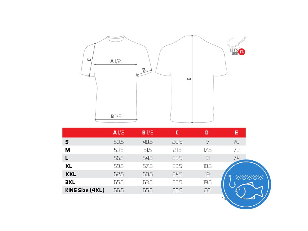 Řekněte světu, že jste rybář s vášní a stylem pomocí trička Delphin USE IT! Ať už se vypravíte na ryby nebo do města, toto triko vám zaručí pohodlí a originální styl. Nápis USE IT! dává jasně najevo, že je pravý čas vyrazit k vodě a použít tu správnou montáž k ulovení vytouženého úlovku. Kromě jedinečného stylu triko poskytuje komfort nezbytný pro úspěšný rybolov či běžné nošení. Samotné tričko je vysoké kvality, stejně jako použitý barevný tisk. Nabízíme je v široké škále velikostí od S až po KING SIZE (ekvivalent 4+XL, který je ve většině zemí označován jako XXXXXL). Model King size tedy hravě oblékne i ty nejstatnější rybáře o hmotnosti 135kg+. Složení: 100% bavlnaDoplňkové parametry