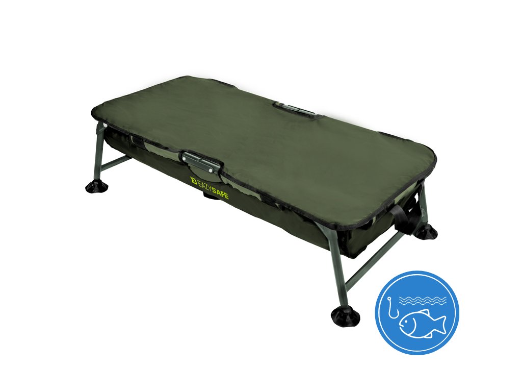 Při navrhování tohoto produktu byl cíl jasný. Přinést na trh vaničku za bezkonkurenční cenu, která bez problémů zvládne i ty největší ryby. Výsledek? Delphin EazySAFE! Základ podložky tvoří velmi pevná železná konstrukce s průměrem trubek až 22 mm. Díky tomu má vanička výbornou stabilitu a nehrozí její převrácení, případně poškození při manipulaci s úlovkem. Použitá látka s pogumovaným povrchem má několik výhod. Po ukončení lovu ji stačí do sucha vytřít a není tak nutné dlouho čekat dokud vyschne. Navíc je velmi snadno omyvatelná a neabsorbuje do sebe nepříjemně pachy, které se mohou následně šířit při transportu ve vašem autě. Celá vanička je velmi pevná a při extrémních testech bez problémů zvládla udržet statické závaží o váze až 75kg! Na obou krajích je všitá sítová látka, přes kterou zevnitř lehce odteče voda. EAZYSAFE také disponuje látkou na překrytí, která je opatřena suchými zipy. Můžete tak v ní rybu uzavřít, pokud si například potřebujete připravit fotoaparát, případně jít nabrat vodu na polití úlovku. Nohy jsou opatřeny kloubovými patkami, které se přizpůsobí terénu a zamezí zaboření do země v případě měkčího podkladu. Při navrhování jsme však mysleli i na transport, což je další silná stránka tohoto produktu. Ve středu je konstrukce důmyslně předělena a tak ji stačí jednoduše přeložit napůl a pomocí rukojetí pohodlně přenášet. V produktu Delphin EAZYSAFE získáte za výbornou cenu jednoduchou, ale zato důkladně promyšlenou a 100% funkční vaničku, v níž se o svůj úlovek nebudete muset nikdy obávat. Technické parametry: Vnější rozměry: 100x50x30cm Rozměr lůžka: 95x45x20cm Transportní rozměry: 50x50x12cm Hmotnost: 3,60kgDoplňkové parametry