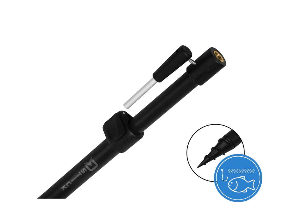 Delphin D-STICK je teleskopickou vidličkou se zavrtávacím hrotem. Už první pohled napoví o prémiovém vyhotovení tohoto robustního a přitom velmi lehkého produktu. Základ tvoří silnostěnné trubky s matnou černou povrchovou úpravou, které jsou velmi pevné a zajišťují vysokou životnost vidličky. Tento model přichází s inovovaným vysouvacím a zajišťovacím mechanismem a je vyroben z kvalitního ABS plastu. Přepracovali jsme ho a nyní je jednodušší na obsluhu a zároveň spolehlivě brání jakémukoliv samovolnému složení vidličky. Spodní část vidličky je osazena masivním a ostrým vrtákem, který dovoluje zavrtat vidličku i do tvrdších podkladů. Tento vrták je zajištěn kolíkem (nýtem), což je jeho obrovskou výhodou. Díky tomu už nehrozí, že by samotný vrták zůstal zalomený v půdě a vám by tak zůstala nefunkční vidlička! Jedná se totiž o výjimečně silný spoj. Ve vrchní části vidličky je upevněn držák, který se zasouvá do spodního dílu a slouží jako páka pro vyvinutí síly během zavrtávání vidličky do nepoddajného podkladu. Konec vrchního dílu vidličky je osazen masivním závitem pro upevnění koncovky, či elektronického signalizátoru záběru. Technické parametry: model 32-50cm: hmotnost 140g model 60-95cm: hmotnost 210g model 80-130cm: hmotnost 280g model 110-180cm: hmotnost 370gDoplňkové parametry