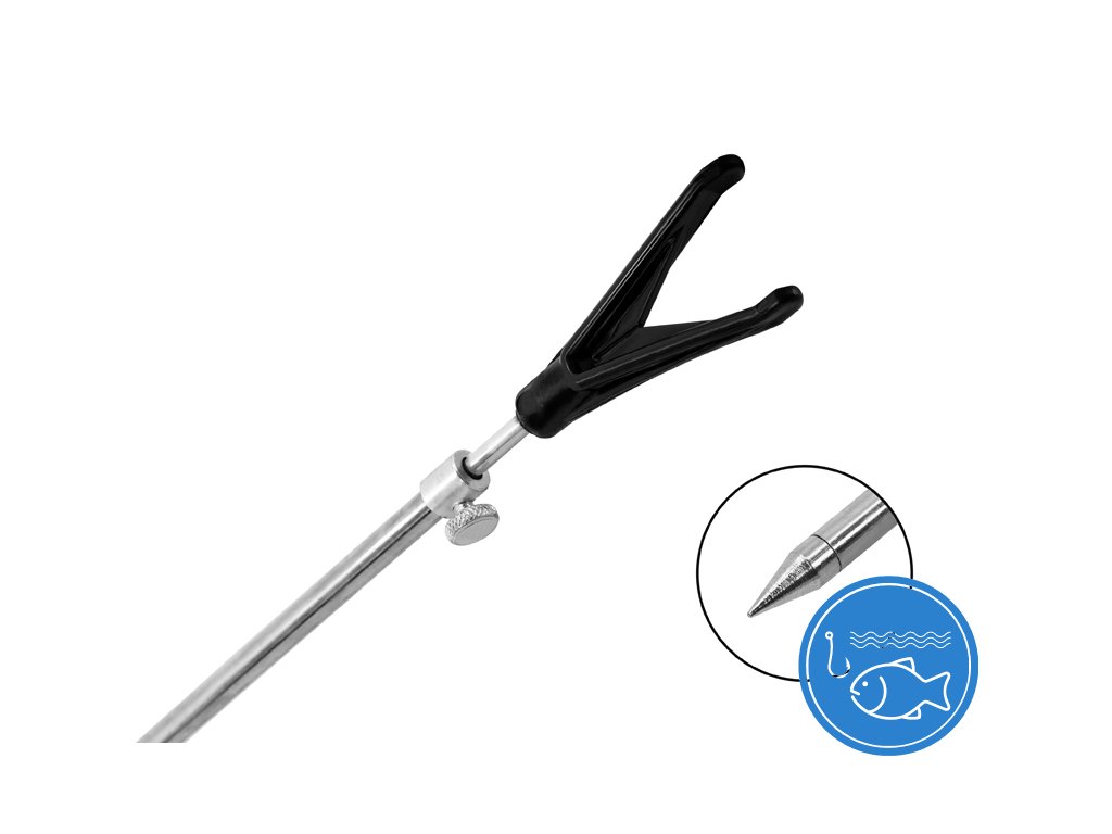 Velmi pevná, teleskopická, přední vidlička s držákem na prut. Vyrobena je z oceli, díky čemuž je výjimečně pevná. Vrchní část vidličky je pevně osazena držákem prutu. Požadovanou výšku nastavíte jednoduše pomocí závitu s maticí, která slouží k zafixování výšky rybářské vidličky. Technické parametry: Rozsah délky: 50-90cm, 60-100cm Vnější průměr spodní tyčky: 0,80cm Vnější průměr vrchní tyčky: 0,48cmDoplňkové parametry