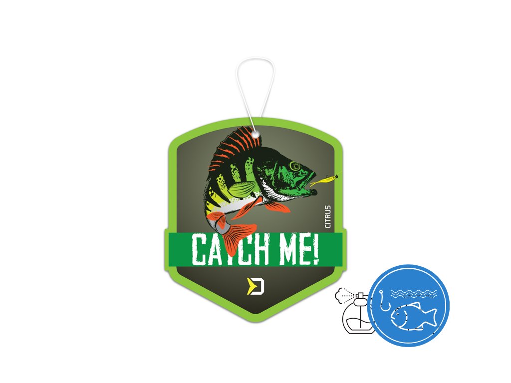 Osvěžte interiér svého auta, či místnosti stylovou vůní ze série CatchME! Díky originálnímu designu s motivem okouna je určena zejména pro všechny příznivce lovu tohoto dravce. Zavěšení na libovolné místo umožňuje elastická gumička.Doplňkové parametry