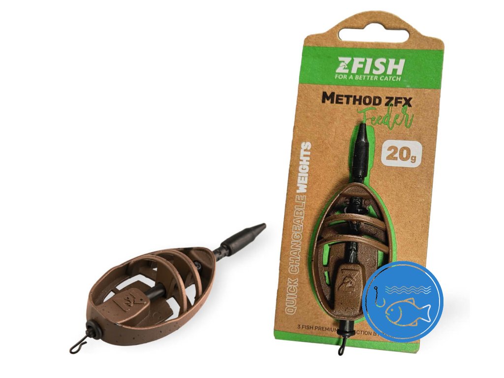ZFISH Method Feeder ZFX jsou špičková a propracovaná method krmítka "NOVÉ GENERACE" z prémiové řady “3Fish”. Na vývoji těchto sofistikovaných krmítek se podílel team našich specialistů a jsou skutečně promyšlená do posledního detailu. Krmítka mají ideální velikost a jsou dokonale vyvážená, takže se s nimi dobře nahazuje a ke dnu dosednou vždy tou správnou stranou. Revoluční novinkou u těchto krmítek je speciální můstek/ploška k umístění nástrahy s háčkem, což zaručí, že Vaše nástraha bude vždy přesně tam, kde má být. Velkou výhodou krmítka je možnost snadné a rychlé výměny zátěže. Umožňuje to vyjímatelná trubička a průřez na zadní straně krmítka. Po vysunutí trubičky z těla krmítka stačí vyjmout vlasec a vyměnit zátěž za jinou. Taková variabilita vám poskytne možnost přizpůsobení se různým podmínkám během lovu, bez nutnosti zdlouhavého převazování koncové sestavy. Krmítka jsou zhotovena v matně hnědé barvě s černými tečkami, takže snadno splynou se dnem a ryby v okolí krmného místa nebudou tolik vyrušovat. Součástí je samozřejmě i univerzální QC obratlík vel. 8 pro snadnou výměnu koncového návazce.