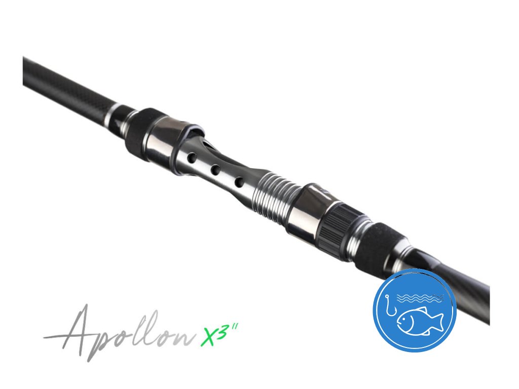 Apollon X3 je speciálně stavěný prut, který díky použitému carbonu 24T kombinuje skutečně daleké náhozy s velmi příjemným zdoláváním. Elegantní 12-ti stopý prut s tenkým blankem je navržen a přizpůsoben tak, aby splňoval požadavky i těch nejnáročnějších rybářů. Takzvaná "K" očka zabraňují omotání smyčkou vlasce nebo šňůry kolem očka při náhozu. Hlavními atributy, na které jsme kladli důraz jsou lehkost prutu vs. odolnost v náhozu vs. ideální délka a zpracování rukojeti, která je vhodná i pro nižší postavu. Apollon X3 disponuje také prodlouženým a zesíleným trnem, který umocňuje náhozy v ideální gramáži 80 – 100g, Apollon však hravě zvládne i těžší. Kvalitní a speciálně zpracované vodící očko o průměru 40 mm a koncové očko 12 mm, jsou samozřejmostí.